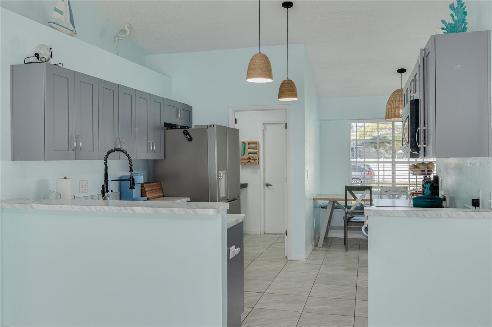Inside, the home features a spacious layout with vaulted ceilings and multiple living areas, giving you flexibility for relaxing, hosting, or working from home. The kitchen has been thoughtfully updated with stainless steel appliances, modern cabinetry, and updated countertops, creating a clean and functional space at the heart of the home. A split bedroom design provides added privacy, while the main living areas feel open and connected.