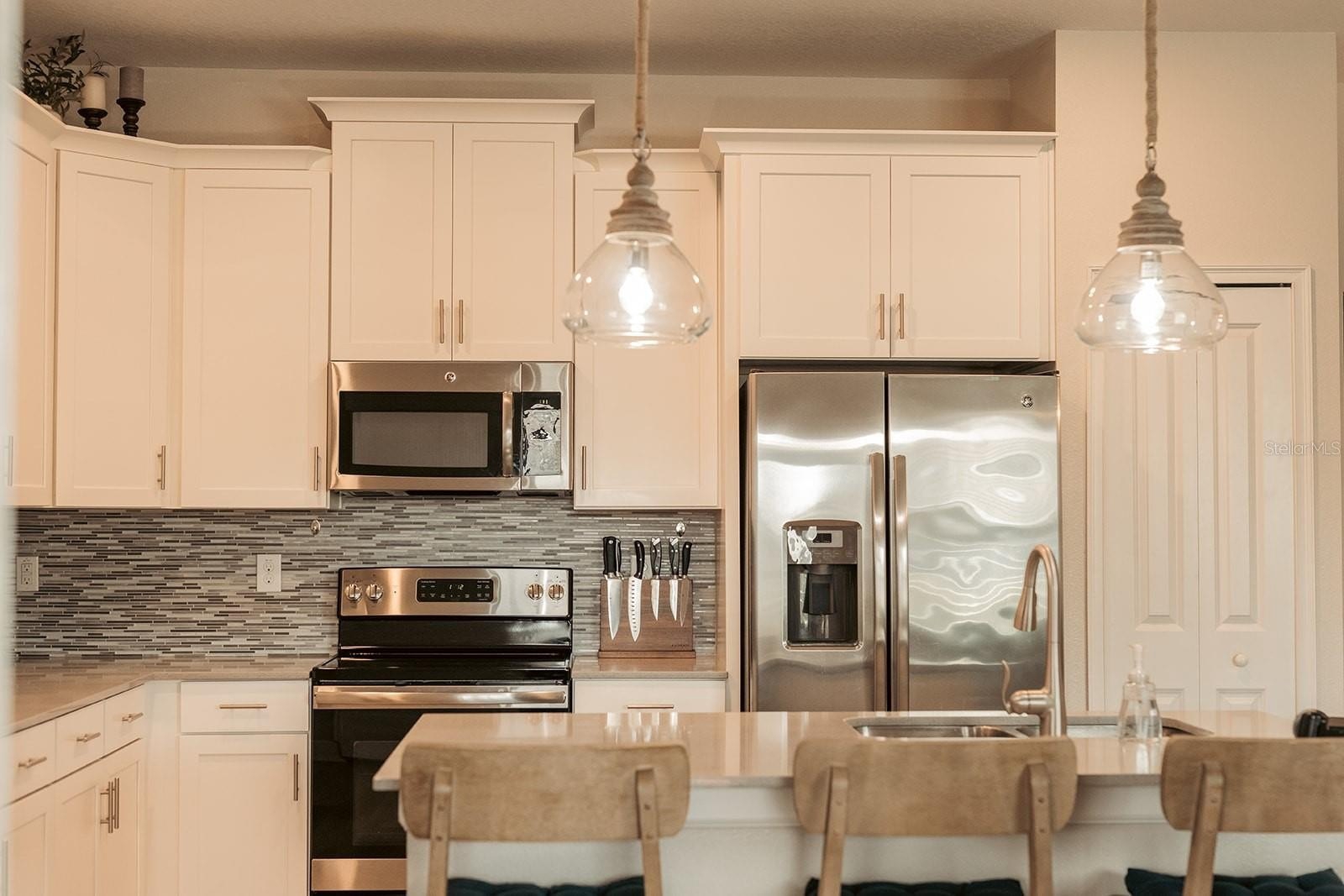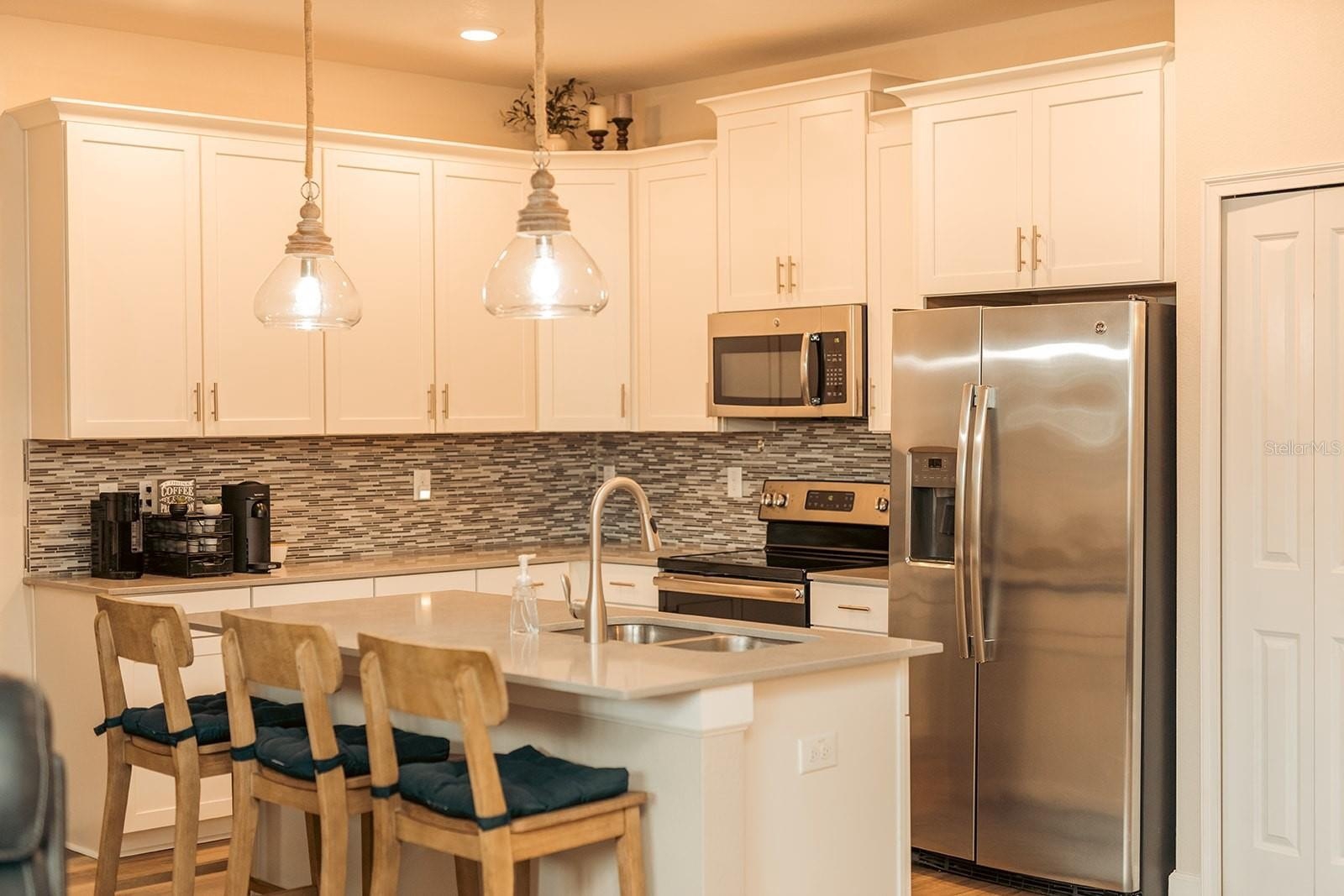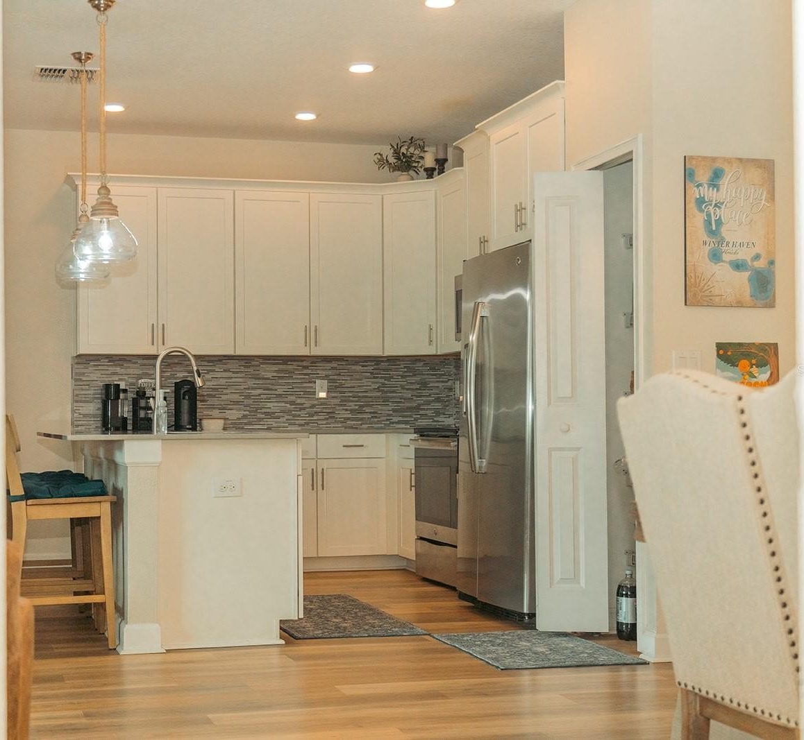The home features new flooring throughout, upgraded countertops, 36-inch kitchen cabinets, and modern lighting fixtures, creating a bright and inviting kitchen and living area perfect for everyday living or entertaining. Both bathrooms have been tastefully upgraded, and additional improvements include a new water heater and recently replaced AC coil for added efficiency and peace of mind. The home was freshly painted inside and out in 2023, giving it a clean, modern feel throughout.