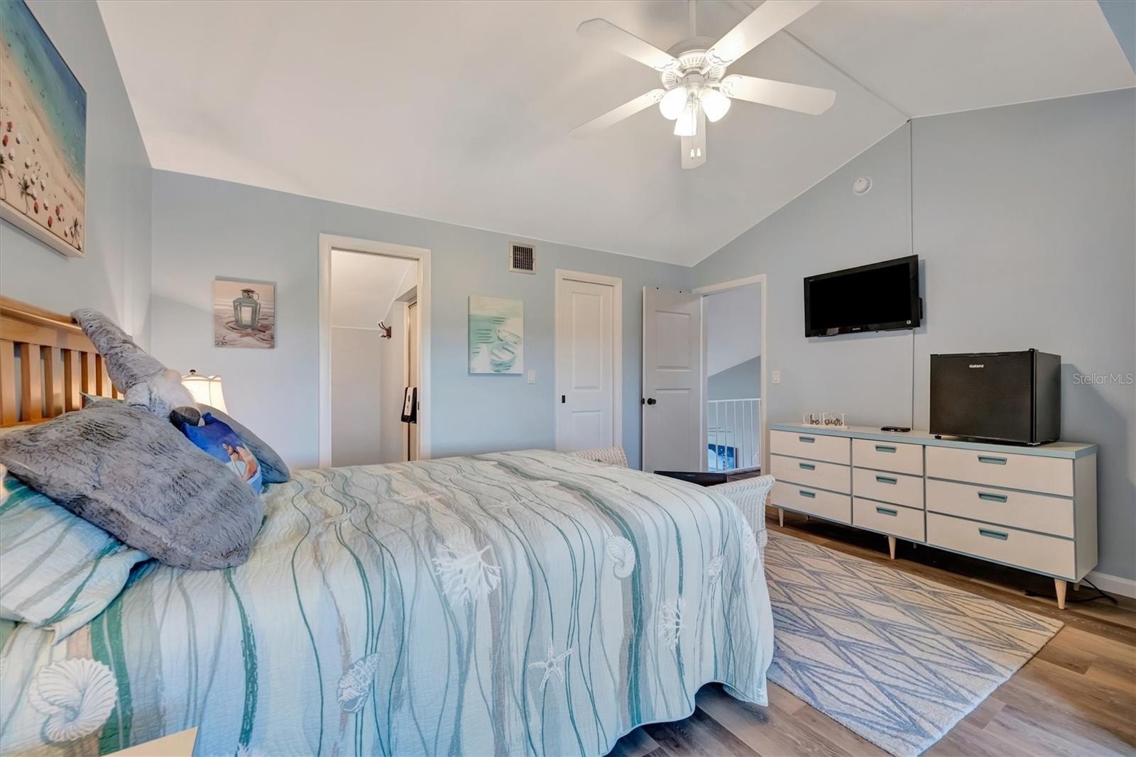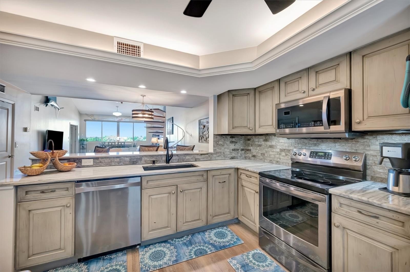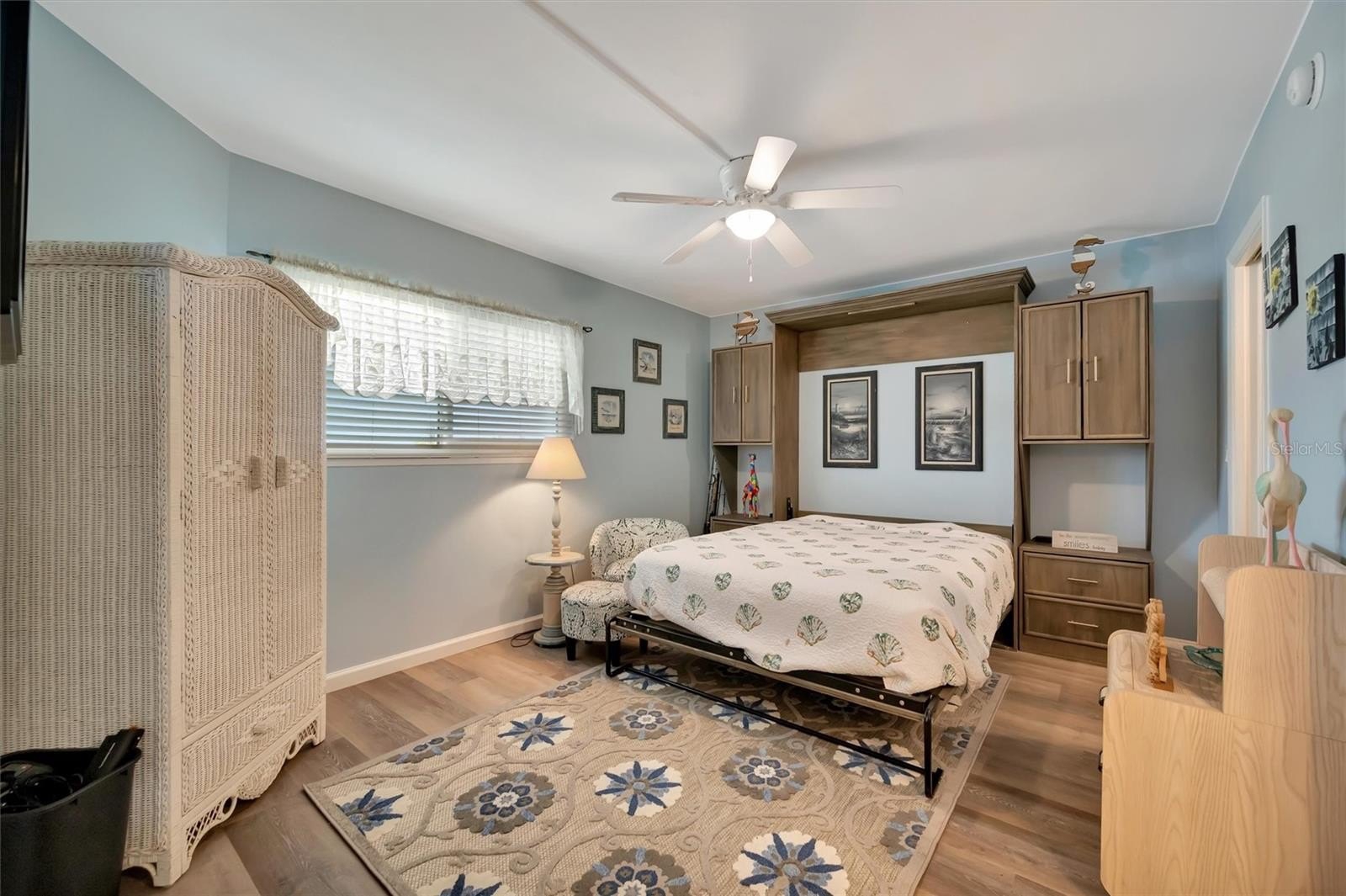 Step inside to discover a bright, open layout enhanced by new luxury vinyl plank (LVP) flooring, fresh interior paint, and stylish ceiling fans. The updated interior features custom closets, extra insulated storage, and a well-equipped laundry room with a convenient wash basin. Designed for comfort and flexibility, the home also includes a Murphy bed, neutral coastal décor, and multiple dining and gathering spaces with a dining table, breakfast bar, and ample seating for entertaining.