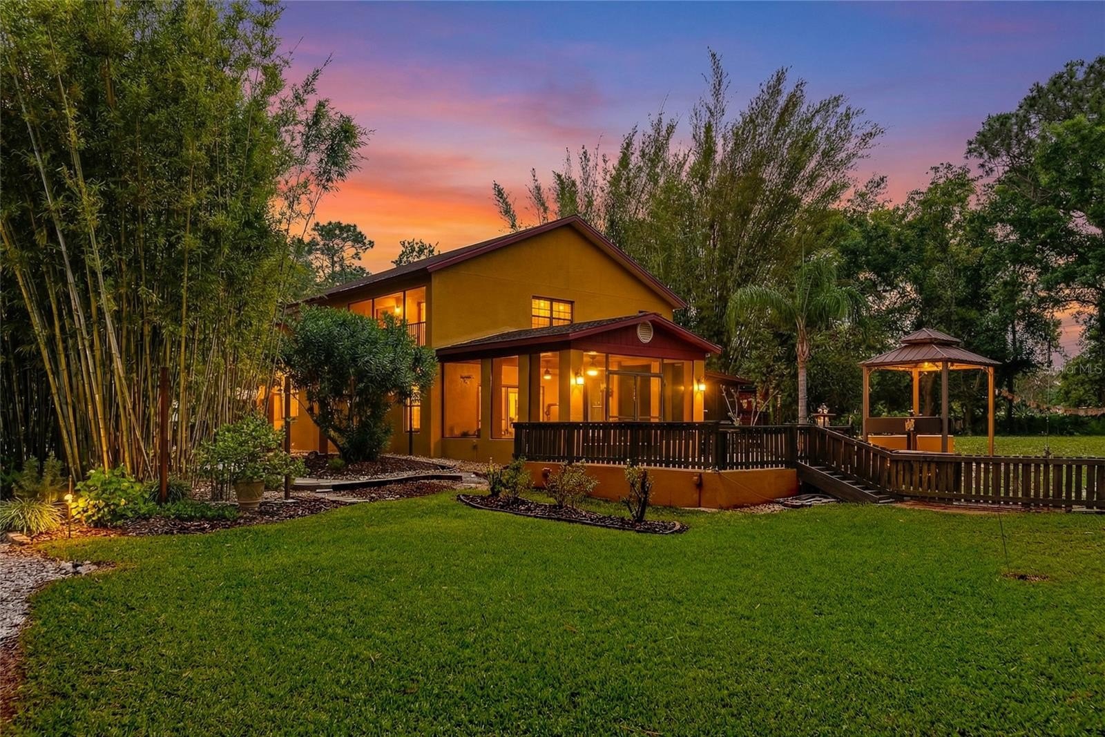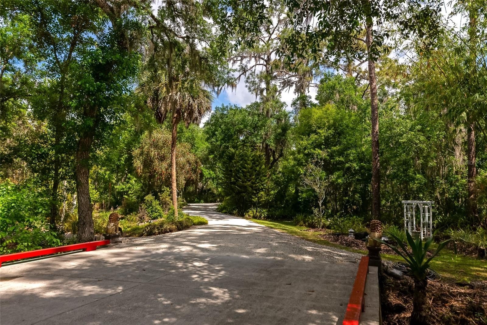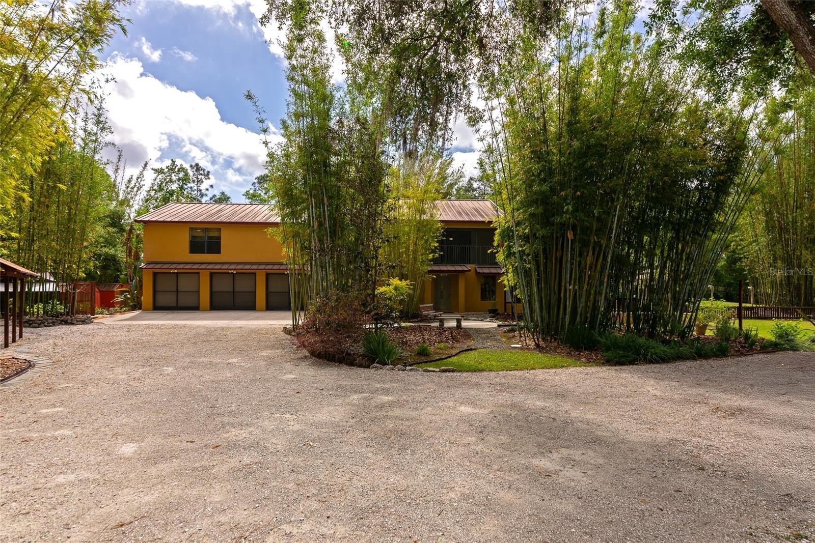 As you approach, you’ll immediately notice the sense of seclusion. The attached 3 car garage could easily be converted to a Mother In Law Suite. Set well back from the road and accessed by three charming bridges, the property welcomes you into a peaceful, private retreat. The grounds are something truly special and not typical landscaping, but a thoughtfully curated natural oasis. Lush bamboo gardens and a rich variety of subtropical plants are strategically placed throughout the property, creating a setting that feels more like a botanical escape than a backyard. Adding to the tranquility, a river winds through the wetlands portion of the land, visible through a backdrop of mature forest. This natural barrier not only enhances the beauty but also provides exceptional privacy from neighboring areas. The unique blend of uplands and wetlands creates a peaceful, campground like atmosphere across different areas of the property, an uncommon serenity that’s hard to replicate. Functionality meets flexibility throughout. A large portion of the acreage is already cleared and usable, featuring multiple sheds, a 4 car carport, and abundant storage options. The oversized 3.5 car garage is built extra deep, offering valuable flex space perfect for a home business, workshop, craft area, or future expansion. Outdoor living is just as impressive, with two screened lanais, an open-air deck, and an extended patio spaces designed for relaxation, entertaining, and soaking in the surrounding nature. It’s the kind of property where every day feels like a getaway. Located within Sundance, residents enjoy a rare combination of freedom and amenities. The community allows for home-based businesses and horses, and offers access to a marina and stables all with minimal restrictions and an incredibly low HOA fee of $220 a year. If you’ve been searching for a property that offers strength, space, privacy, and a deep connection to nature...this is it.