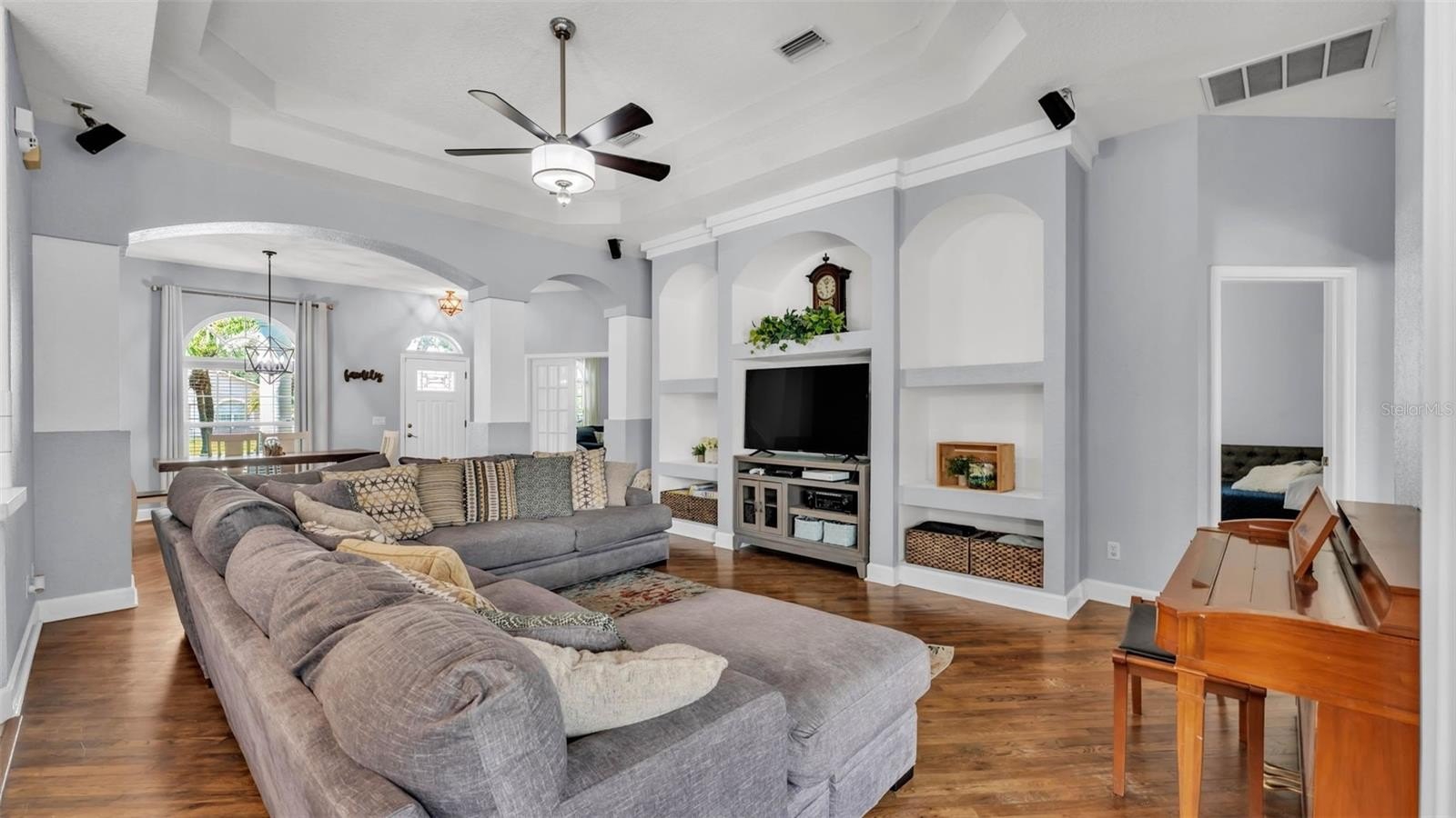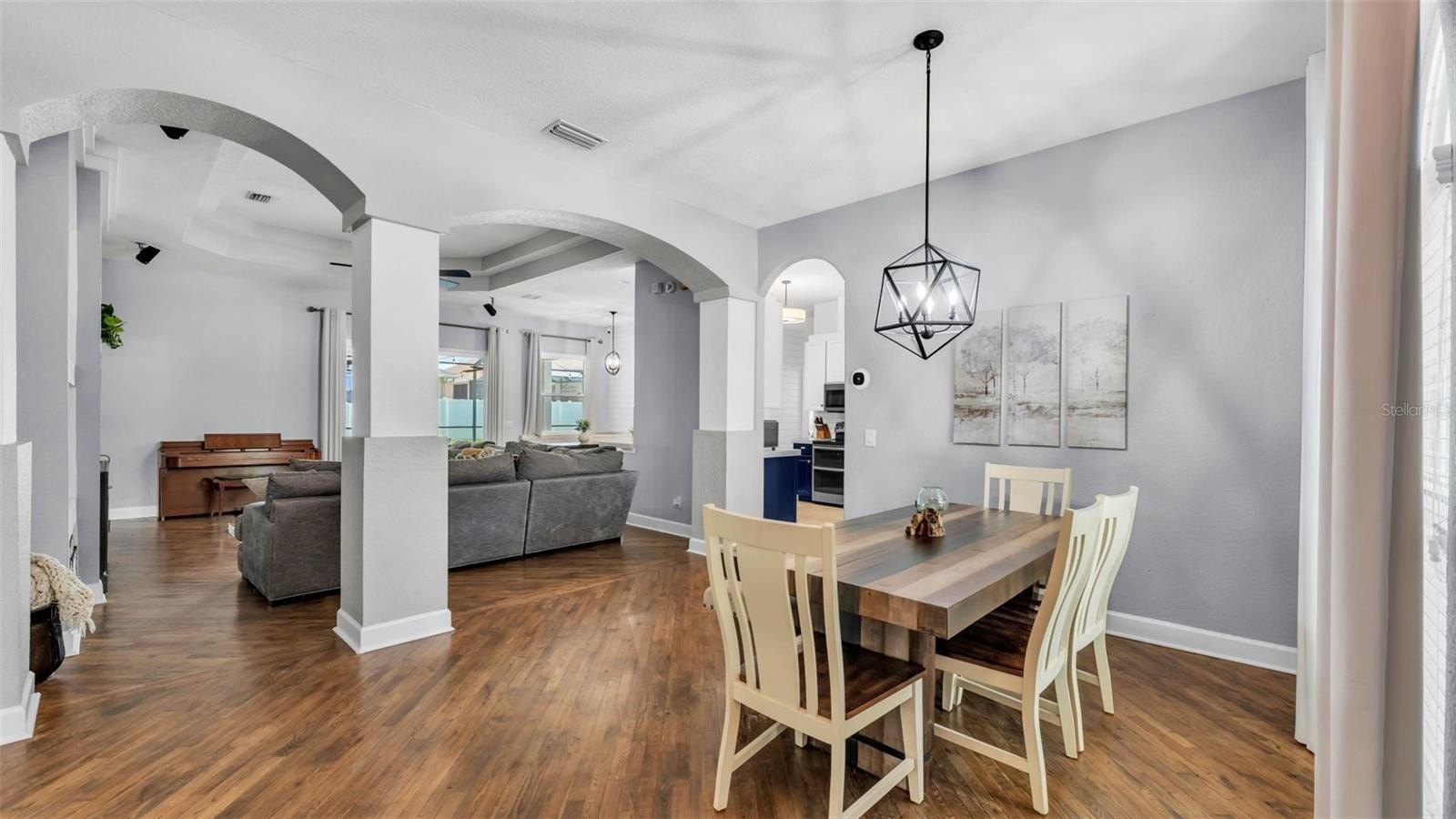 *Seller offering $7000 in closing costs!!* Gorgeous Move-In Ready Pool Home in Valrico Groves! Located on a quiet cul-de-sac in one of Valrico’s most desirable communities, this beautifully updated 5-bedroom, 3-bath home offers the perfect blend of space, style, and comfort. Step inside to an open floor plan with real hardwood flooring, crown molding, double tray ceilings, and a formal dining room. The remodeled kitchen is a chef’s dream—featuring quartz countertops, stainless steel appliances, subway tile backsplash, a breakfast bar, and an eat-in nook that opens to a spacious great room. A private den with double doors makes the perfect office or flex space. The large downstairs primary suite includes dual vanities, soaking tub, walk-in shower, and a generous walk-in closet. Upstairs you’ll find a spacious 5th bedroom/bonus room with a full bath—ideal for guests or a game room. Enjoy Florida living year-round with a screened-in, heated pool, fully fenced vinyl backyard, lush landscaping, and updated gravel areas. Key Updates: Roof (2021) with 3-dimensional shingles, downstairs HVAC (2023), upstairs HVAC (2017), impact-rated double-pane windows/sliders (2019), new water heater (2024), water softener (2021), updated toilets, sprinkler system, and more. Includes washer/dryer, Ring doorbell, and outdoor security cameras. Low HOA, no CDD, and conveniently located near shopping, dining, beaches, downtown Tampa, and Tampa International Airport. This one checks all the boxes—schedule your tour today!