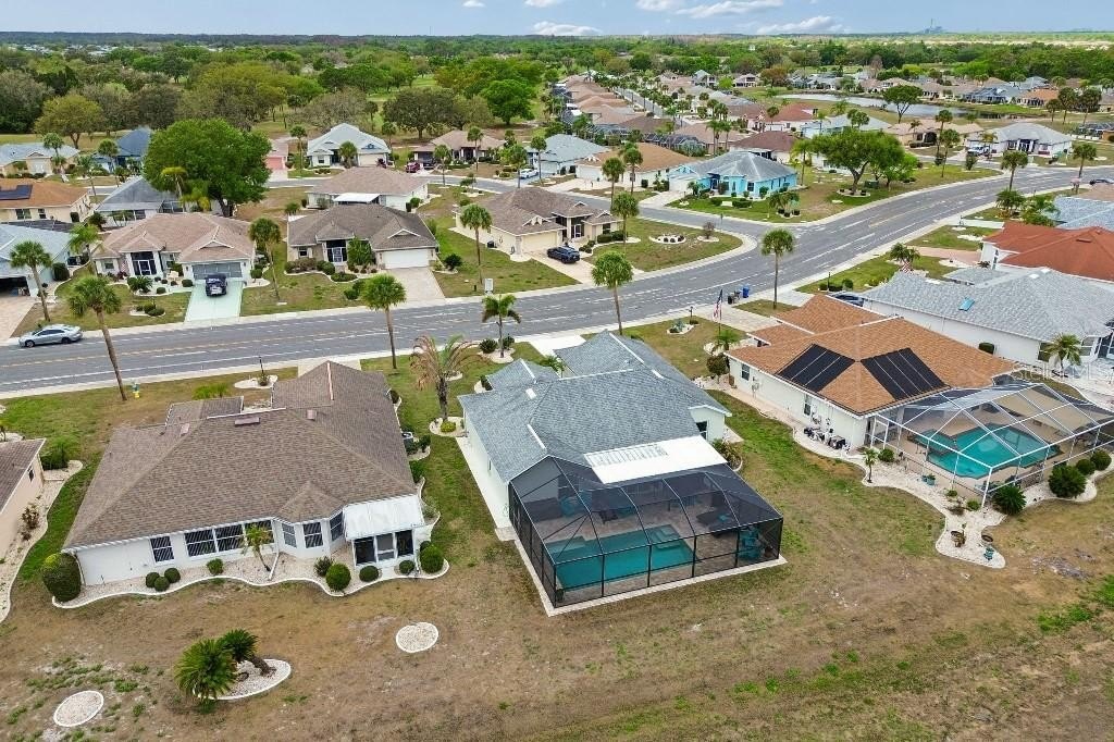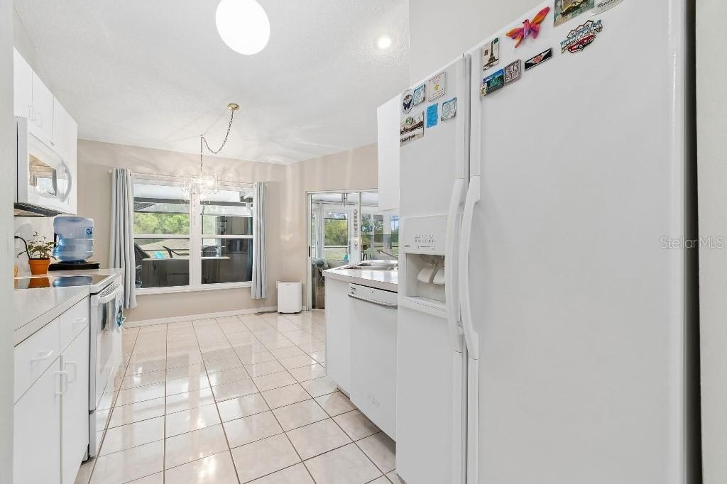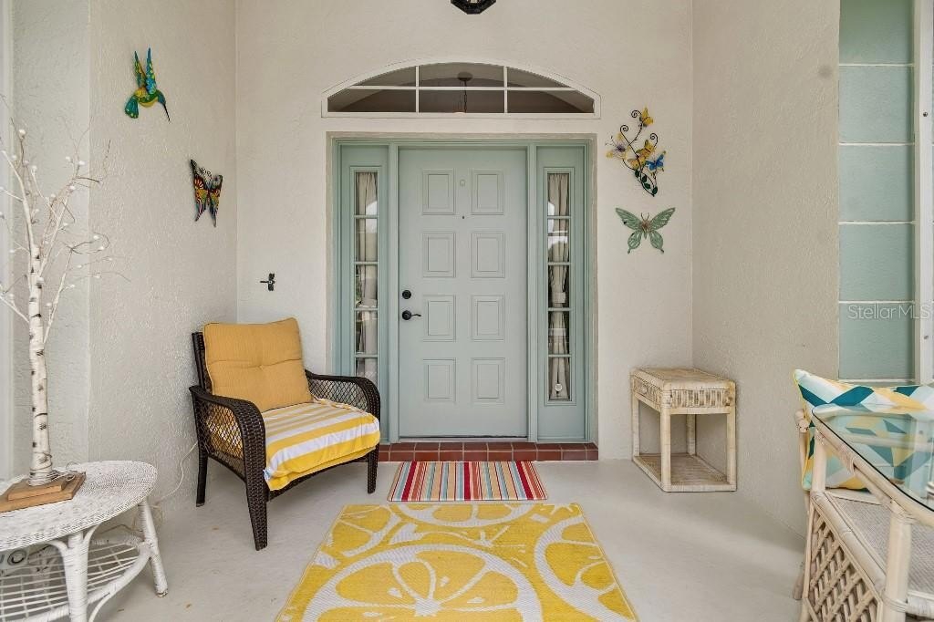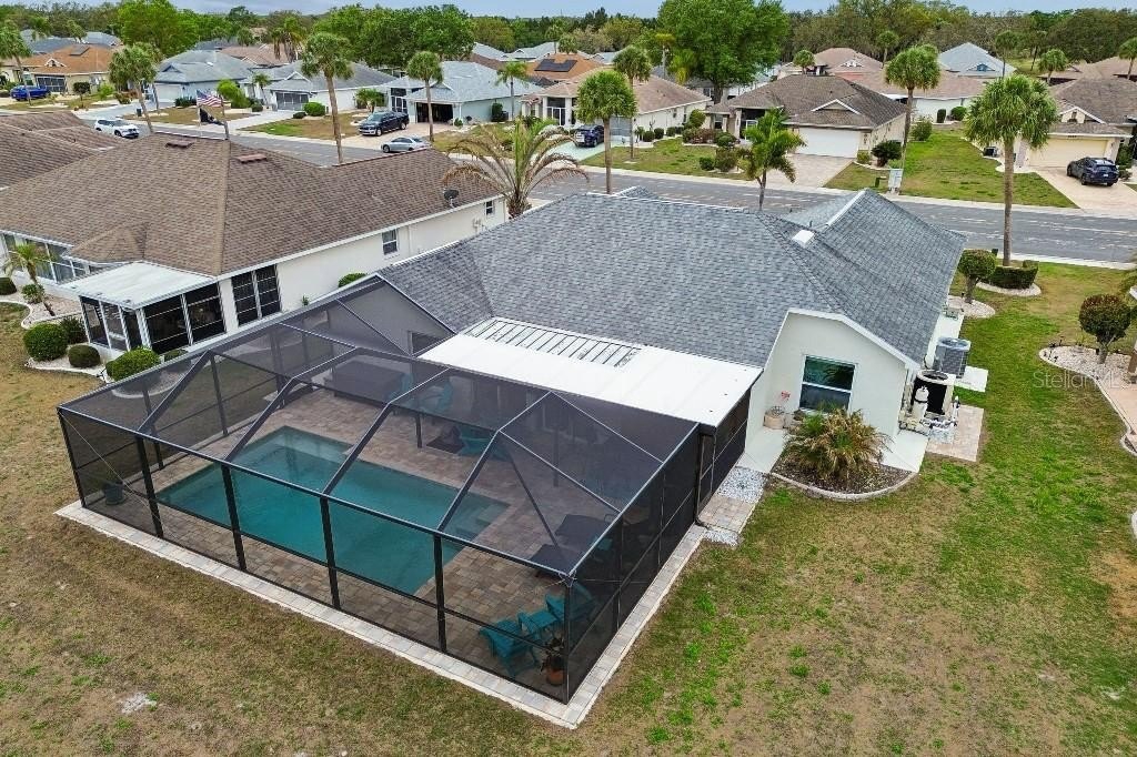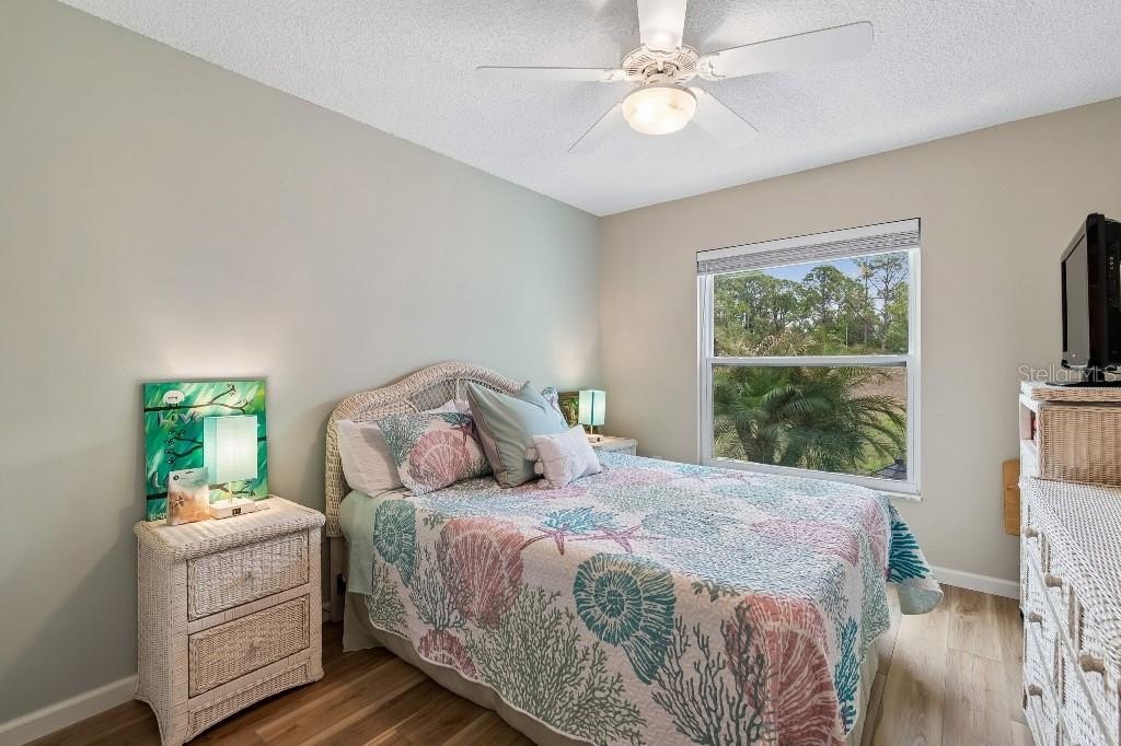 Welcome to this beautiful Nassau Model two bedroom/two bath POOL home with a conservation view. This Coloosa neighborhood home has a split plan, vaulted ceilings, living/dining combination. The master ensuite includes two walk-in closets, double sinks, walk-in shower and linen closet. The guest bedroom also has a walk-in closet. Flooring is luxury vinyl plank throughout with tile in the wet areas. Enjoy relaxing in the Florida Room as you look out onto your fully screened in new heated salt water pool and pavers built in 2024 which includes a beautiful view of a conservation area and a side view of the peaceful pond. The outdoor area includes a Weber Grill, utensil storage, new refrigerator and storage for pool floats and accessories. The laundry room includes a sink and the newer washer and dryer (12/2022). Out in the two-car garage you will find a pull down ladder for storage along with storage cabinets and shelving. Outside the home is an irrigation system as well as gutters around the home. The screened front porch provides a view of your neighbors as they walk their dogs or just relax and take in the fresh air. Some furnishings are available for purchase. This golf cart community is near I75 and within an hour of three international airports, major league sporting events, amusement parks and best of all--beautiful beaches. The amenities of Sun City Center include indoor and outdoor pools, fitness center, tennis and pickle ball courts and over 200 clubs/activities. Don't miss the opportunity to live in he best and most economical 55+ community in Florida.