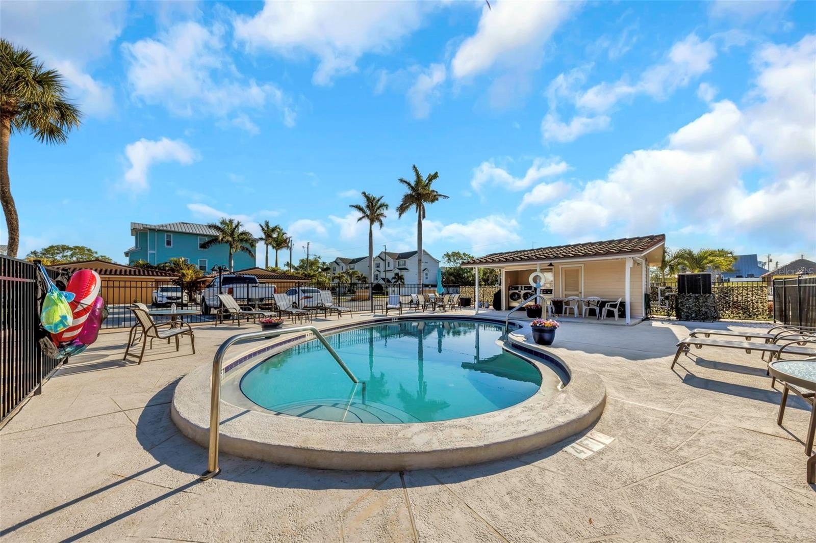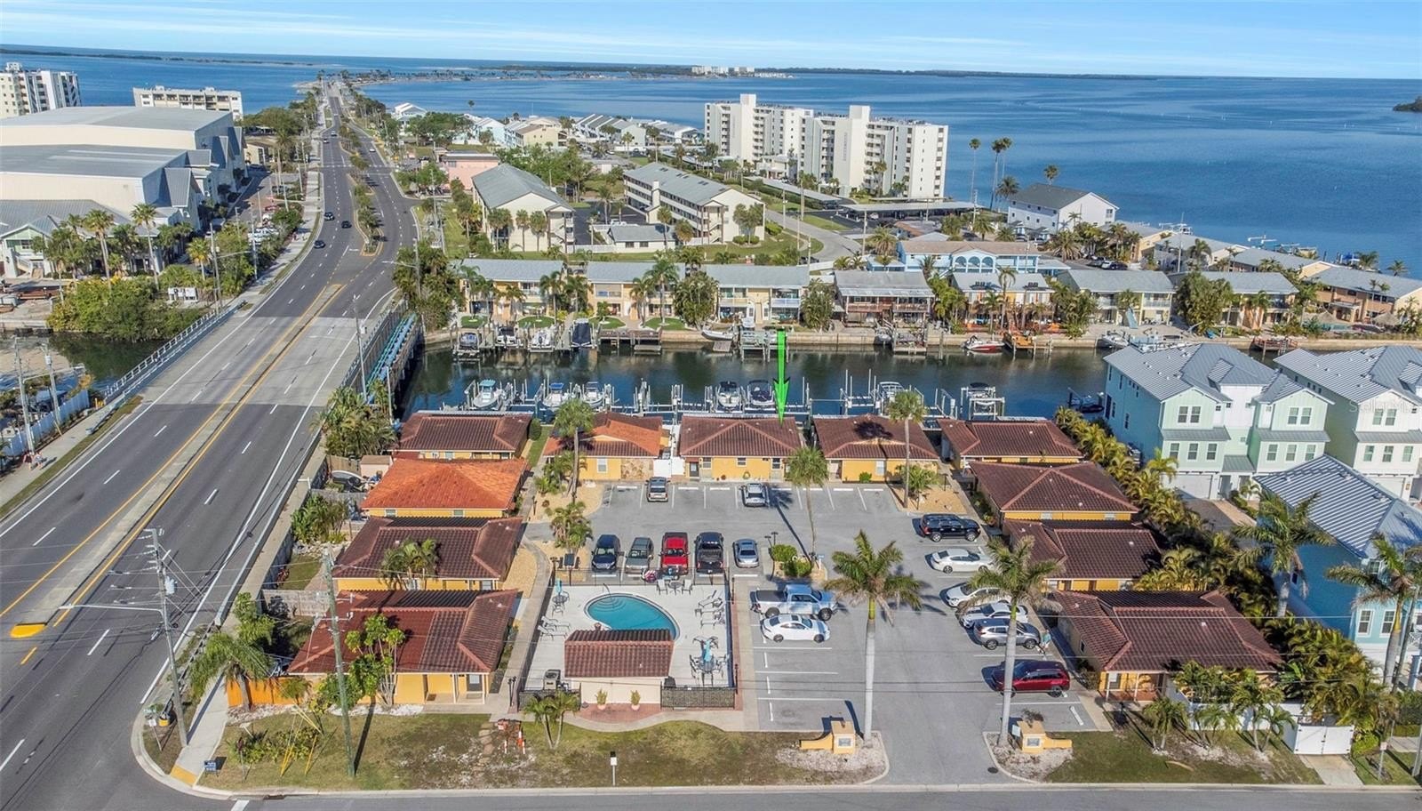 Must see this 2 bedroom/1 bathroom Villa in the heart of Dunedin with over 20 feet of waterfront views! Have your morning coffee while sitting on the covered back patio and watching the Dolphins! Relax by the heated Pool! Home currently used as a 1 bedroom with two living areas, but can also be a 2 bedroom/1 bath. Boat slip rentals often available in the complex. Pets allowed, no size limit. 1 month rental allowed. Low HOA fee of $150/month. Located just a short distance to Honeymoon Island, the Pinellas Trail and the vibrant heart of downtown Dunedin! With walkable access to kayaking, cycling, golf courses and beachfront leisure, this is the ultimate Florida retreat. HVAC replaced in 2024. HW heater 2025. Small community of 22 villas.