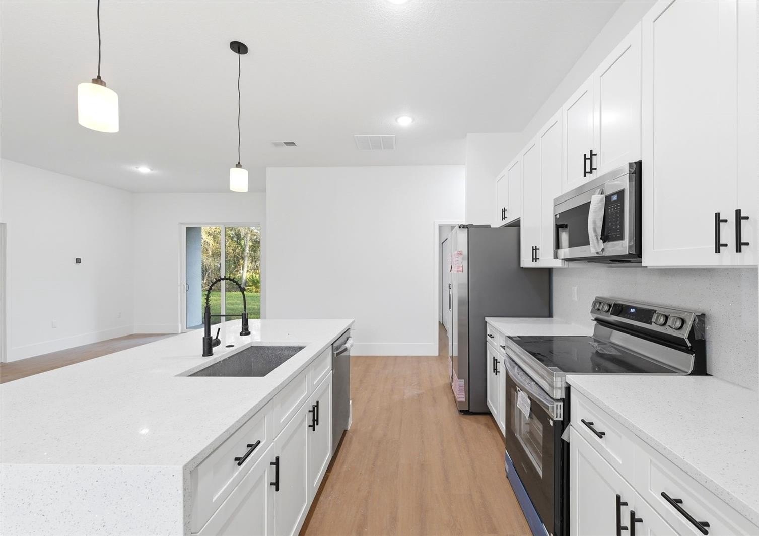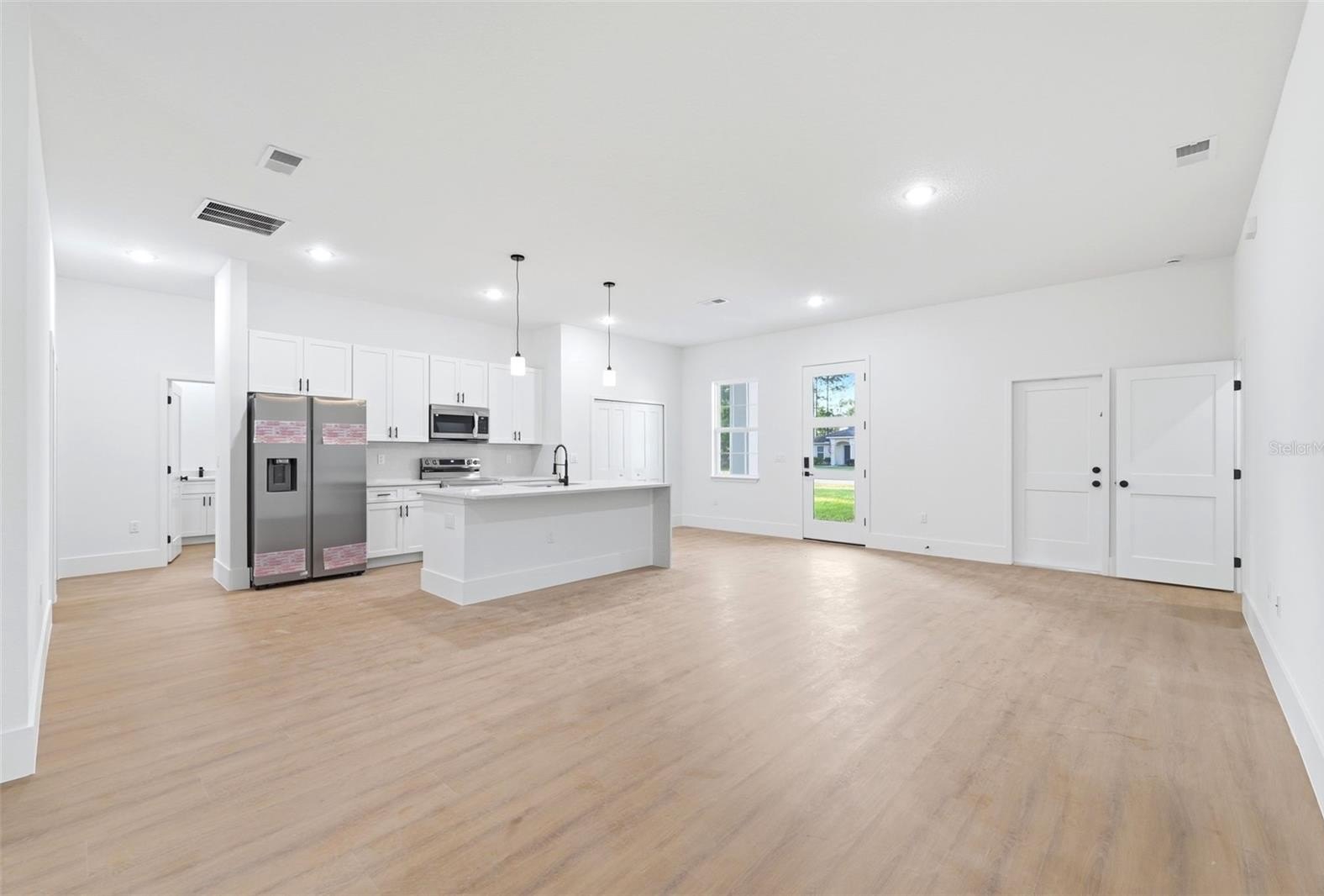 Oversized lot! Brand-new, move-in ready home in growing Dunnellon—ideal for buyers seeking modern homes near Rainbow River and outdoor recreation. This never-lived-in 4-bedroom, 2-bath residence features a bright, open-concept layout with seamless flow and sliding glass doors leading to the outdoor area, perfect for indoor-outdoor living. The kitchen comes fully equipped with appliances, wood cabinetry, and ample counter space for everyday comfort or entertaining. Set on a spacious 0.35-acre lot, offering plenty of room to create your dream backyard. Includes a 2-car garage and generous yard space. Conveniently located approx. 3.5 mi to Rainbow Springs State Park, 2.0 mi to Publix Super Market, 1.8 mi to Walgreens Pharmacy, and near schools, dining, and medical services. Located in a high-growth area—don’t miss this opportunity.