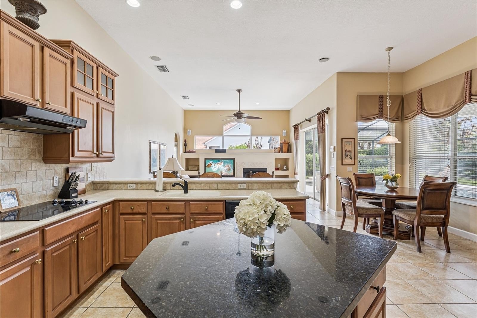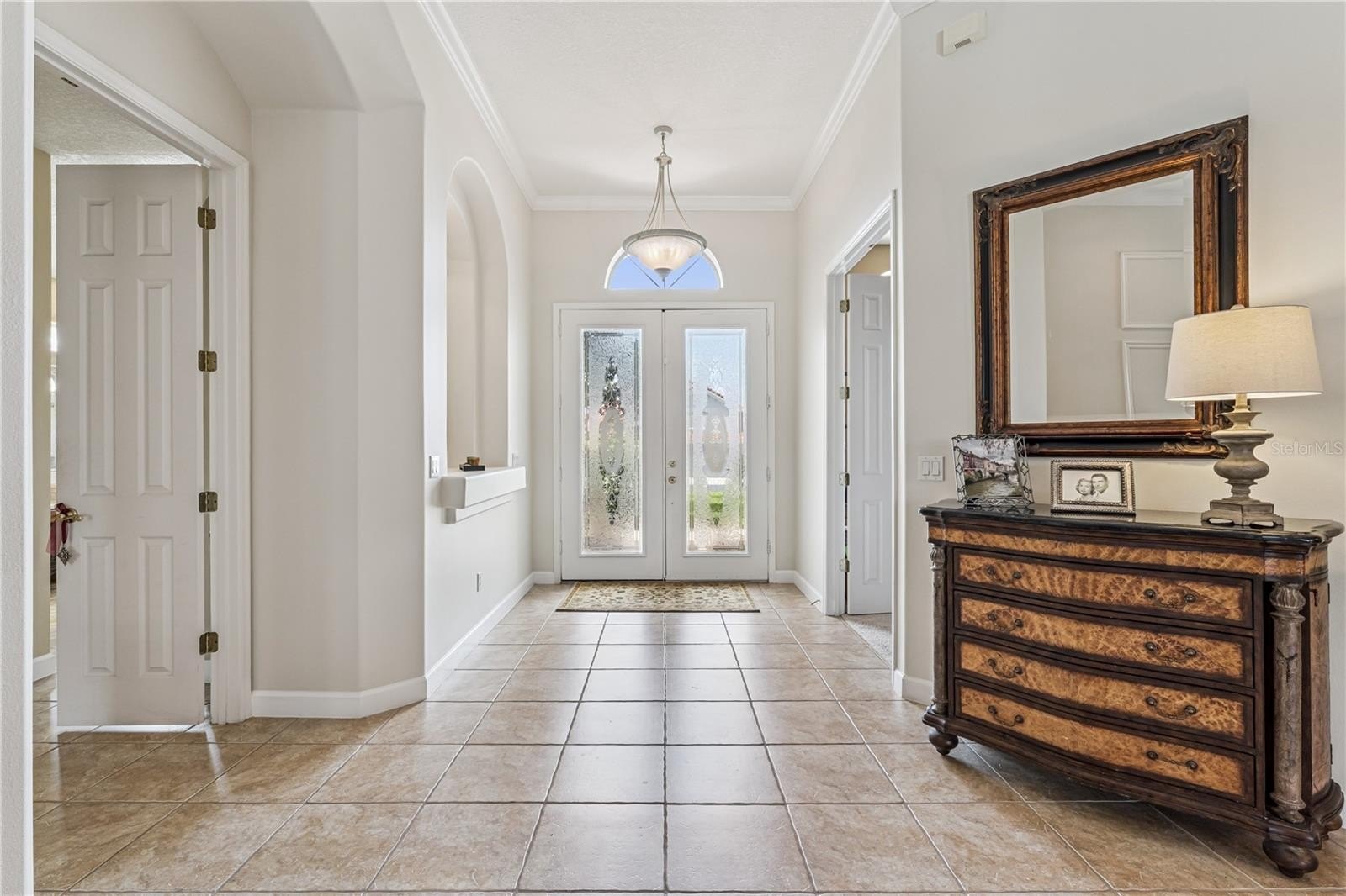 Step outside to enjoy the screened-in swimming pool, large covered lanai with built-in grill, and generously sized backyard. Additional highlights include tile flooring in main living areas, soaring 15-foot tray ceilings, crown molding, plantation shutters, custom draperies, built-ins and decorative niches, a paver driveway, tile roof, and 3 car garage.