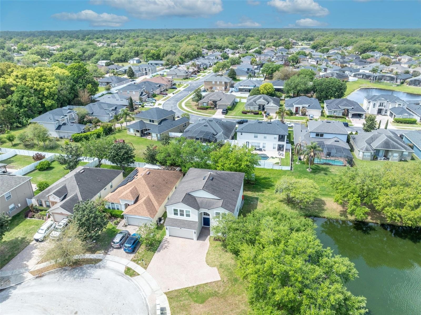 Discover privacy and modern luxury in this stunning 6-Bedroom, 4-Bath Home, perfectly situated on a premium cul-de-sac lot bordering a tranquil pond in a gated community. This residence has been meticulously maintained, offering a "like-new" experience with substantial upgrades and architectural finishes throughout. The open-concept Kitchen & Dining Room are both visually pleasing and functional. The custom tongue-and-groove ceiling, w/ crown molding is accented by recessed lighting, modern light fixtures and large windows that frame picturesque views of the side pond and lush backyard. The Kitchen features exotic granite countertops; the space is equipped with premium stainless appliances (all under 2 years old) and a versatile moveable island or table. A breakfast bar opens into the Spacious Great Room, now anchored by a brand-new, designer Nickelboard accent wall that adds a sophisticated, contemporary texture. Sliders open to the Porch and Back Yard. Completing the Main Floor is an additional (or 6th) Bedroom, which is perfect for an Office or Guest Room, a Full Bath & inside Laundry Room. The second-floor Primary Suite is a true getaway; a massive room boasting a Sitting Area & huge walk-in closet. The luxury spa-Bath features a slipper tub, wooden decorative shower wall, dual-head shower, his & her vanities & separate toilet. With four additional oversized Bedrooms & 2 Full Baths, you have endless space for family bedrooms, a home gym, media room, multiple dedicated home offices or guest wing. The Back Yard is private and a canvas for creating wonderful outdoor space. Other features include: Roof 2018, Hybrid 80-gallon water heater 2018, one AC replaced in 2025, Brand New Garage Door, Oversize Paver Driveway that will accommodate numerous parked cars, New 2nd Floor Windows, Exterior Painted in 2025, all appliances new within 2 years, updated light fixtures, outlets and more. This is a fantastic location near I-4, 417, 429 & minutes to Seminole Town Center with numerous restaurants, nearby shopping & top medical facilities. You will be impressed w/ this Spacious Home in a very desirable location.