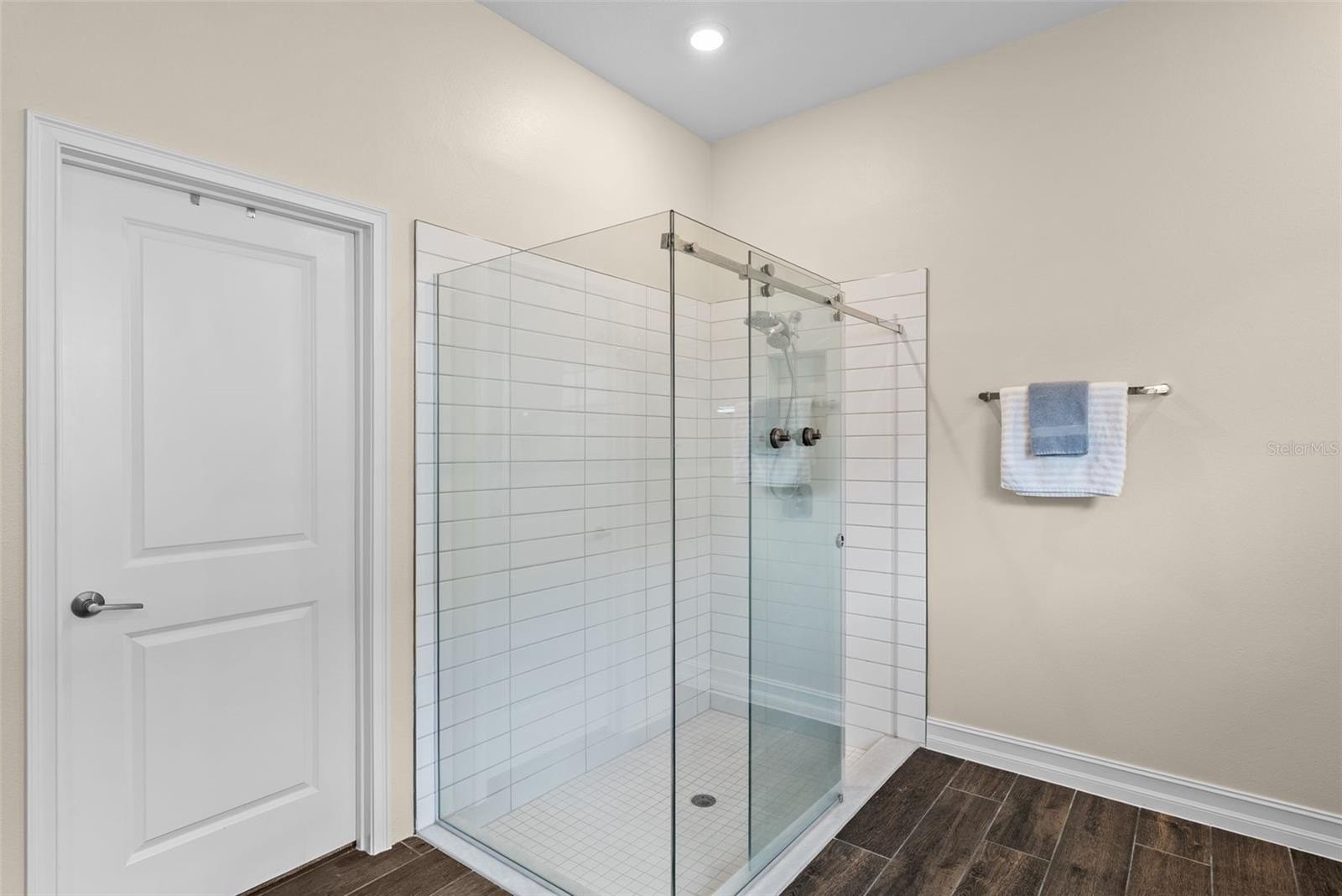 One of the secondary bedrooms is privately tucked away with its own dedicated bathroom and walk-in closet, making it ideal as an in-law suite or guest quarters.