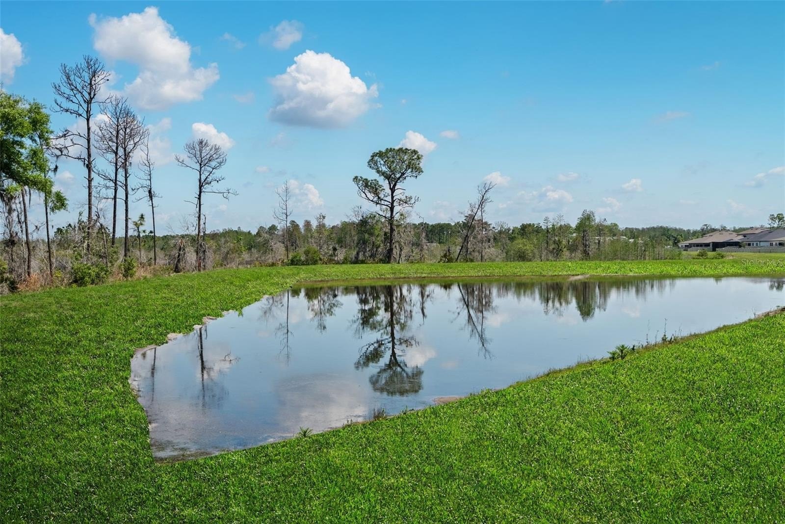 Connerton Preserve Dreamhome: Gorgeous 4-bedroom, 3-bath, 3-car garage single-story home, better than new built in 2023, featuring panoramic views of the pond and wildlife preserve. Perfectly positioned on a premium homesite, the oversized paved patio creates an ideal setting for peaceful mornings, sunset evenings, and exceptional wildlife and birdwatching right in your backyard. Perfect curb appeal with large paved driveway and manicured front lawn.