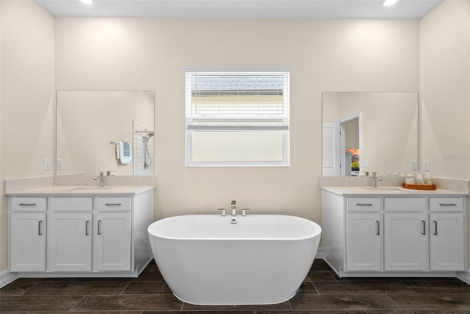 The luxurious primary suite offers a true retreat, highlighted by inspirational views and a spa-like ensuite with a freestanding soaking tub, creating a calm and indulgent escape.