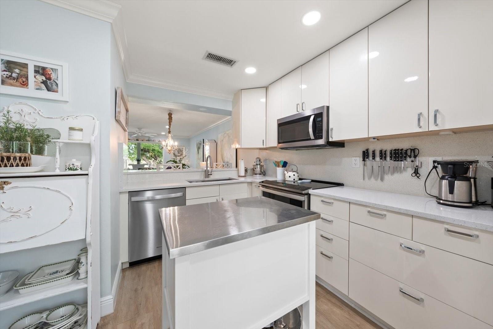 Thoughtfully renovated from top to bottom, the interior showcases tasteful, cohesive finishes including crown molding, durable luxury vinyl plank flooring, new windows, and a new AC system, providing both style and peace of mind.