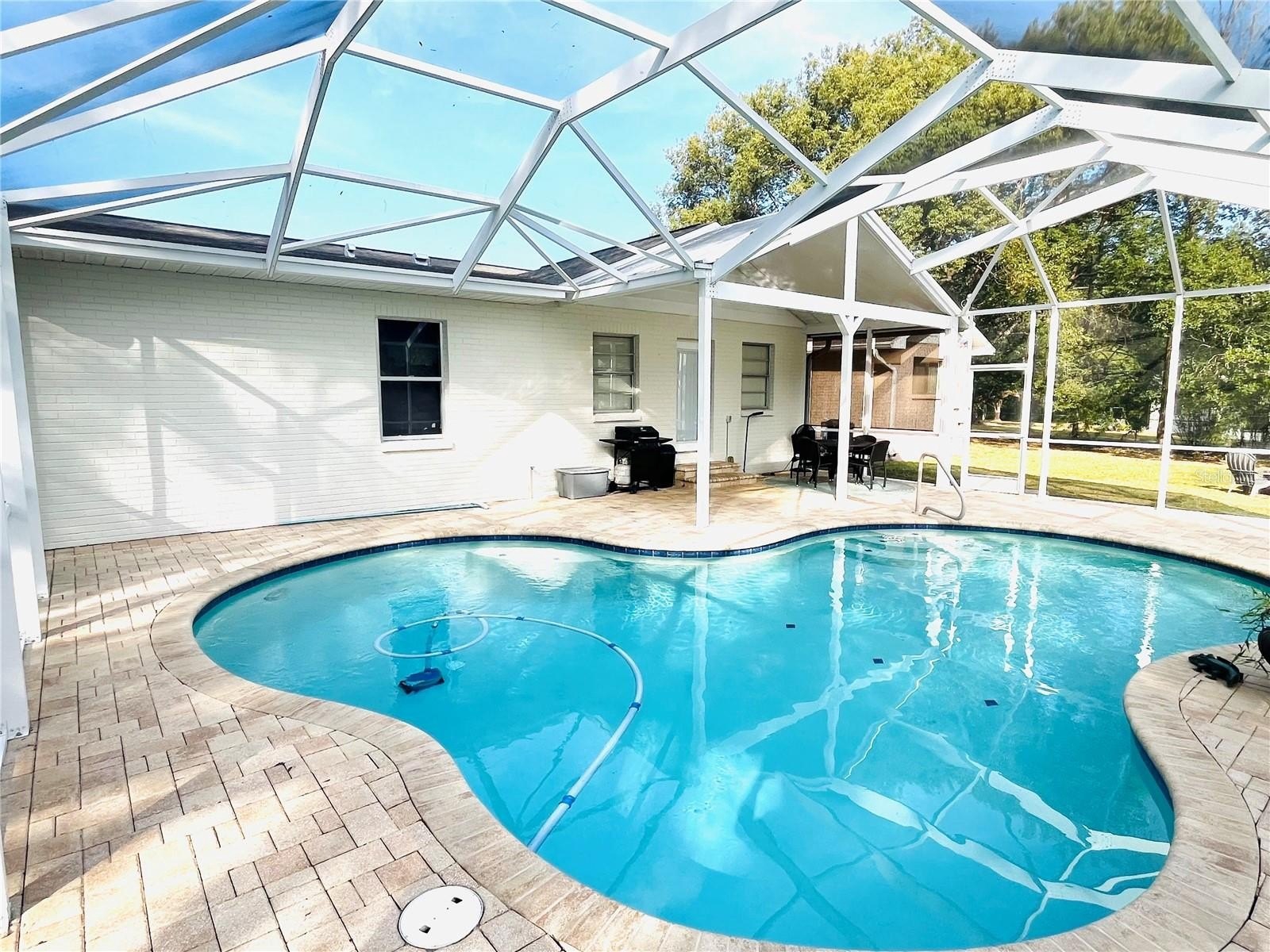 offers a private guest suite with its own entrance, full kitchen, and living space. This home has 4 bedrooms and 3 baths. The guest suite could easily be repurposed as a den, home office, or additional family space. Enjoy Florida living at its best with a screened pool and lanai with beautiful pavers, a detached 2½-car garage/workshop (720 sq. ft.). The house is situated on almost a full acre with a quarter-acre of the property already fenced-in and surrounded by beautiful shade trees and bamboo for privacy. Two AC units (both 3 years new), roof (2023), no HOA, and an RV/EV hook-up make this home both comfortable and convenient.