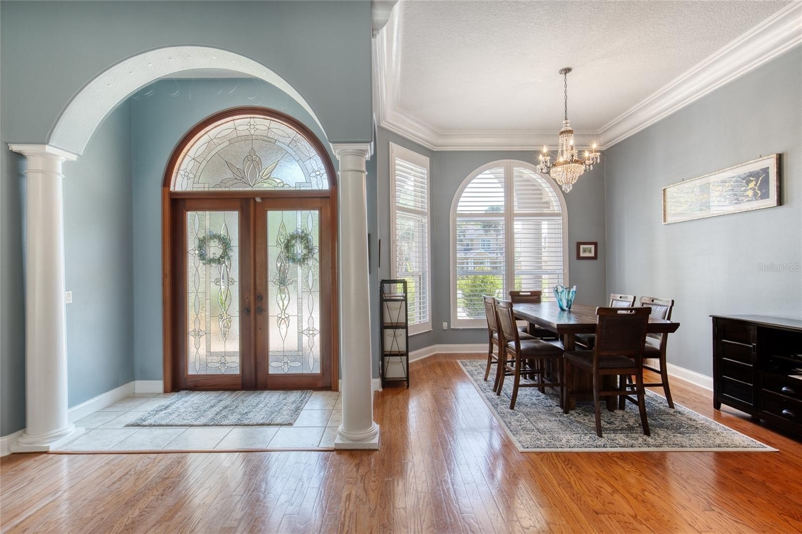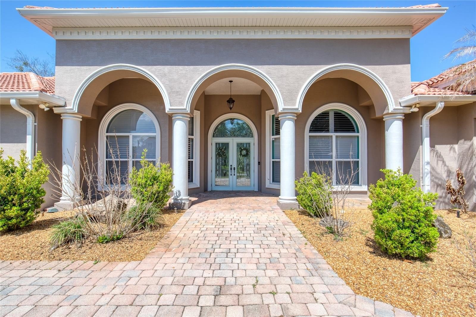 Nestled in the highly desired Ormond Lakes subdivision, 124 Squirrel Lane offers an unparalleled blend of sophisticated design and modern convenience. This meticulously maintained residence spans over 2,600 living square feet and features a thoughtfully designed split floorplan with 4 bedrooms and 2 bathrooms. From the moment you arrive, the expansive circular driveway with beautiful brick pavers and upgraded landscaping, including new rock landscaping added in 2024, sets a grand tone for the entire property. The home's exterior is further enhanced by a durable tile roof and a fresh coat of professional paint completed in October 2025. Stepping inside, you are greeted by an airy sanctuary defined by 12-foot ceilings, crown molding throughout, and an abundance of natural light. The living and dining rooms boast elegant hardwood floors, while the dining area is accented by timeless plantation shutters. The chef's kitchen is a culinary dream, featuring massive 68-inch custom cabinets, granite countertops, and a large walk-in pantry with extensive shelving. Modern stainless-steel appliances installed in 2022, a gas range, and a cozy kitchen nook make this the true heart of the home. For added comfort, the living area features a warm gas fireplace supported by a Cunningham propane tank that was recently replaced in March 2026.