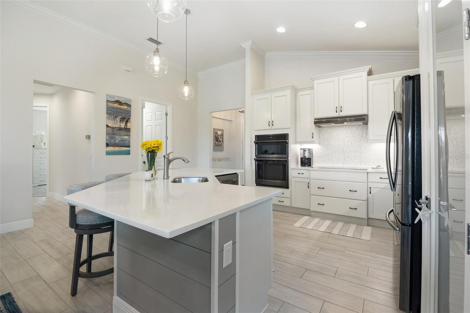 The kitchen? Absolute perfection for anyone who loves to cook or entertain. It’s decked out with custom cabinets (with pull-out drawers—so handy!), a spacious island, and stainless steel appliances. It flows right into the great room, where soaring ceilings and pocket sliding doors bring the outdoors in. And speaking of outdoors, the backyard is an entertainer’s dream. Picture this: a covered patio, a summer kitchen ready for BBQ nights, and a heated saltwater pool that’s perfect for relaxing or hosting friends. This is where you’ll want to spend every weekend.