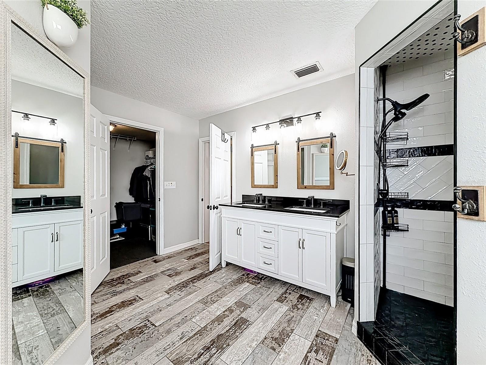 Your primary suite is your private retreat. You’ll appreciate the beautifully updated bathroom featuring a new vanity, dual sinks, two new toilets, and a stunning walk-in shower that gives the space a clean, modern feel. Your walk-in closet offers the storage and organization you’ve been looking for.