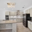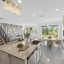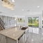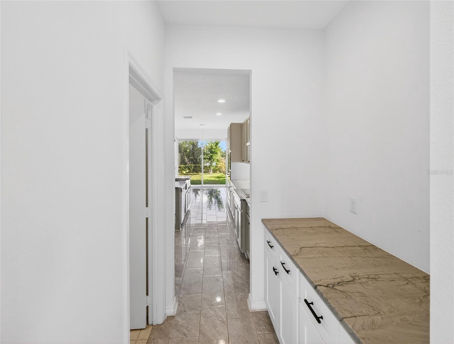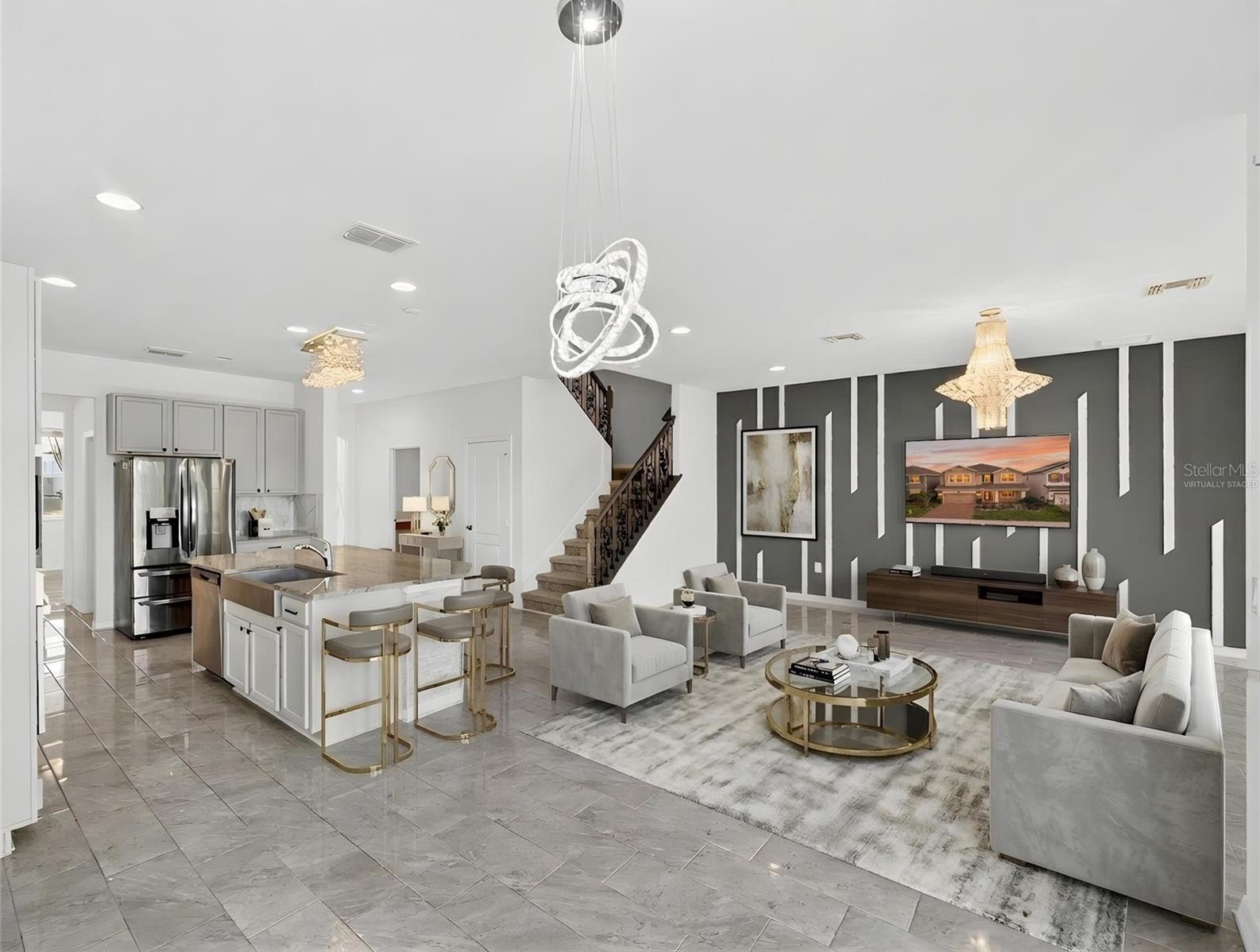 The chef-inspired kitchen is truly the heart of the home, featuring sleek quartz countertops, custom cabinetry, a designer backsplash, built-in oven and microwave, an oversized breakfast bar, and a butler’s pantry—perfect for effortless entertaining and organization.