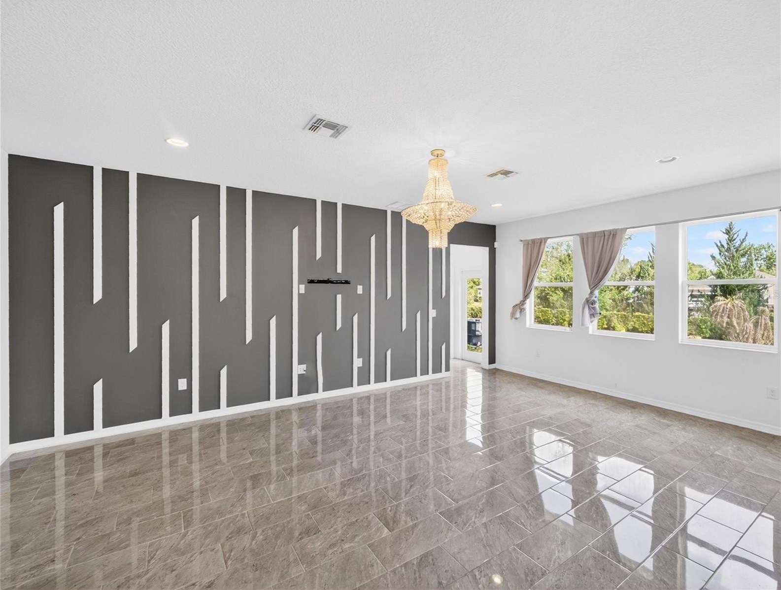 From the moment you walk in, you’re greeted by soaring ceilings, a dramatic iron staircase, and custom accent walls that create an unforgettable first impression. The open-concept design seamlessly blends everyday comfort with elegant entertaining, flowing into a formal dining space and expansive living area ideal for hosting or relaxing in style.