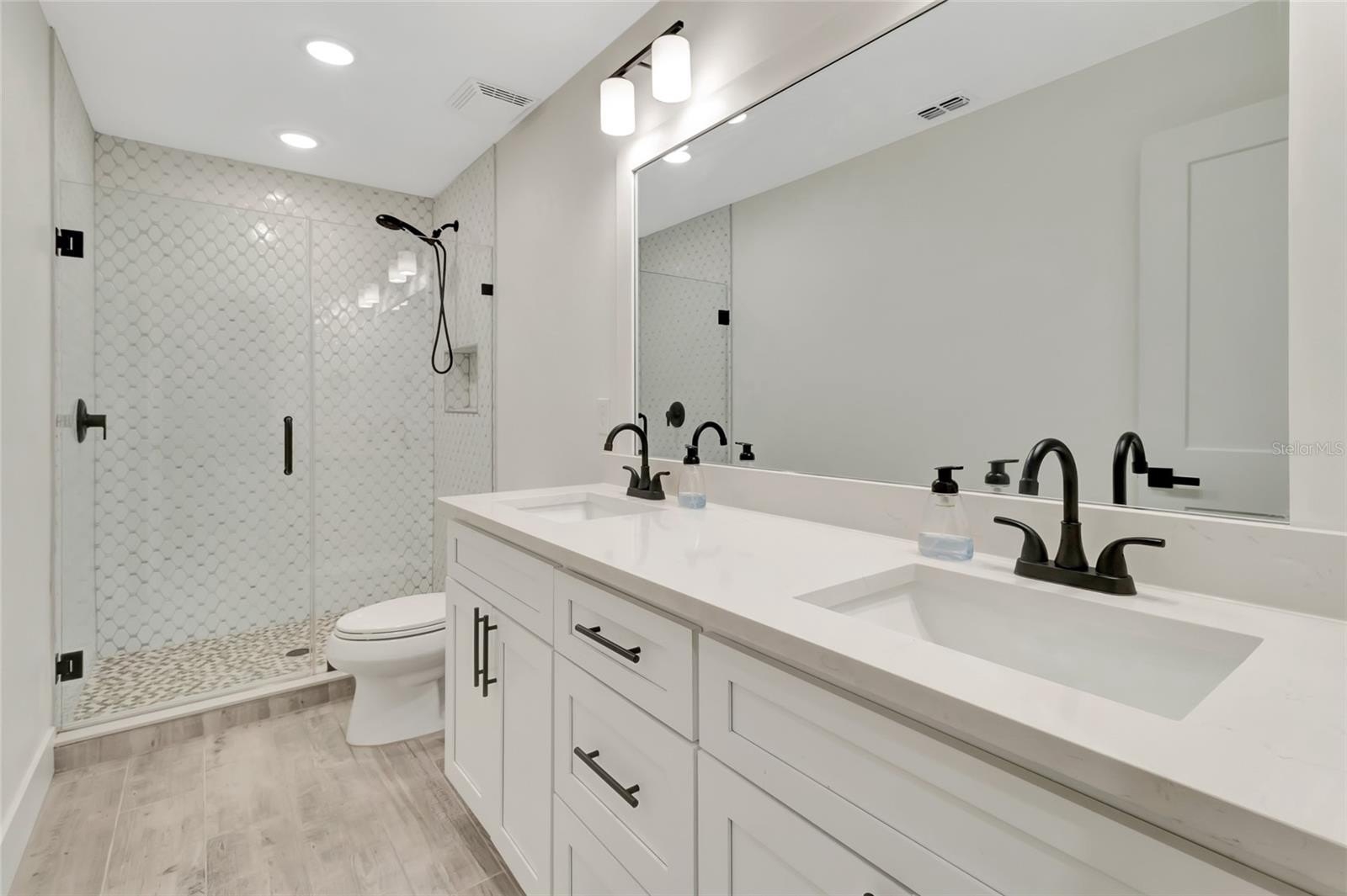 The primary suite is a true retreat — a spacious sanctuary finished with an oversized shower that feels more spa than suburb. The additional four bedrooms offer room for everyone, while the fully renovated bathrooms mean that nothing has been left for the next owner to do. The flex room off the kitchen provides the perfect additional space for entertaining or lounging.
