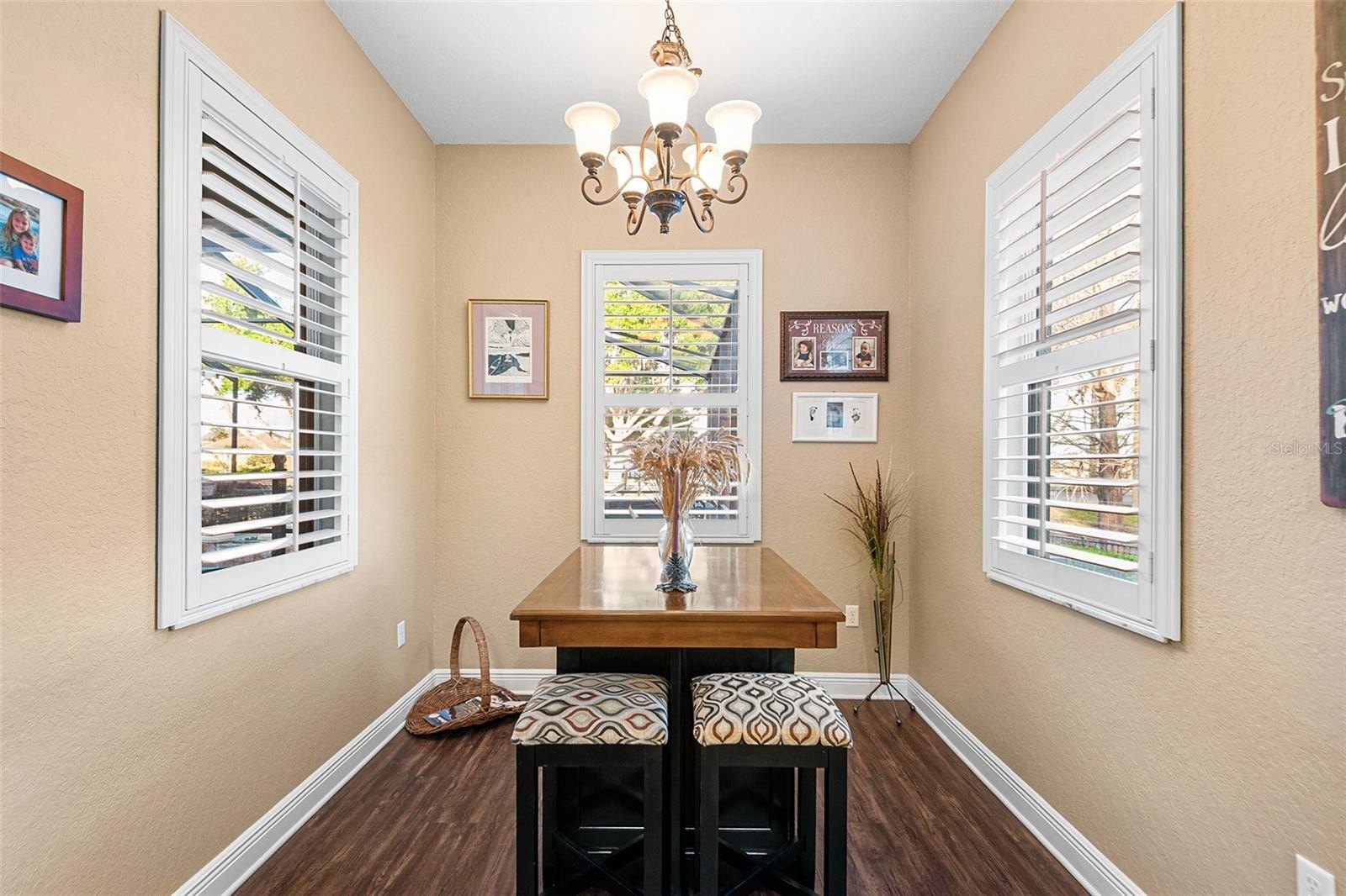 The kitchen and living areas seamlessly connect to a bright breakfast nook and expansive outdoor living space, creating an inclusive indoor-outdoor lifestyle.