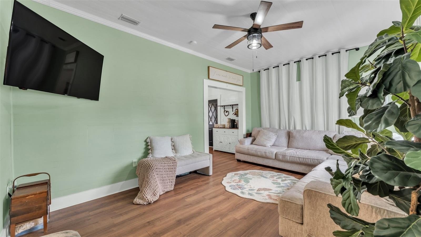 Enjoy peace of mind with a newer roof and AC (2022), fresh interior and exterior paint, updated baseboards and crown molding, and all-new flooring throughout. The home features new carpet and vinyl, upgraded lighting with energy-efficient LED fixtures inside and out, new outlets, and stylish new fans.