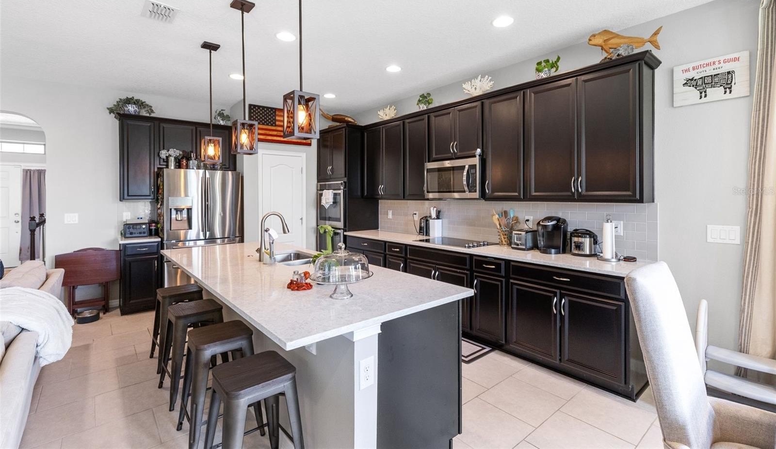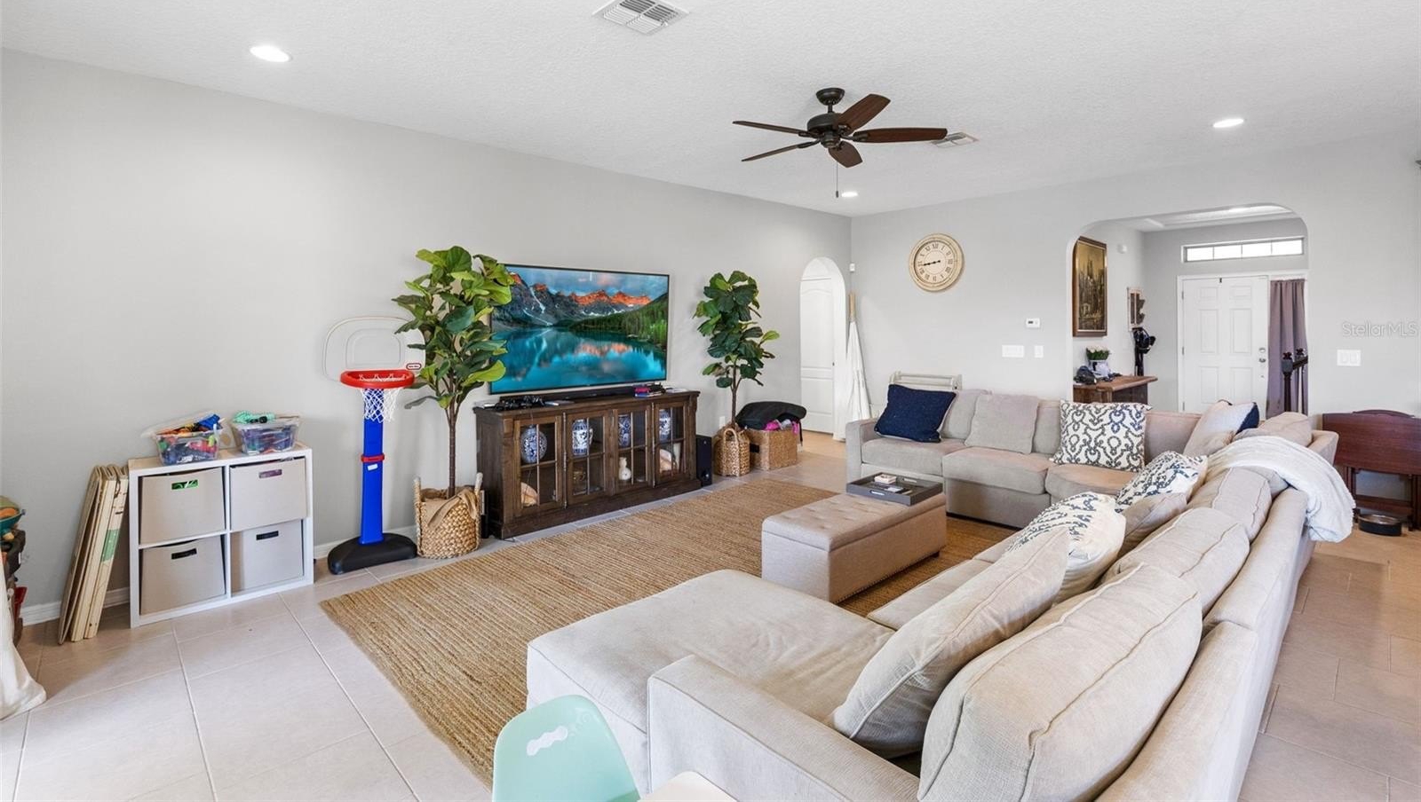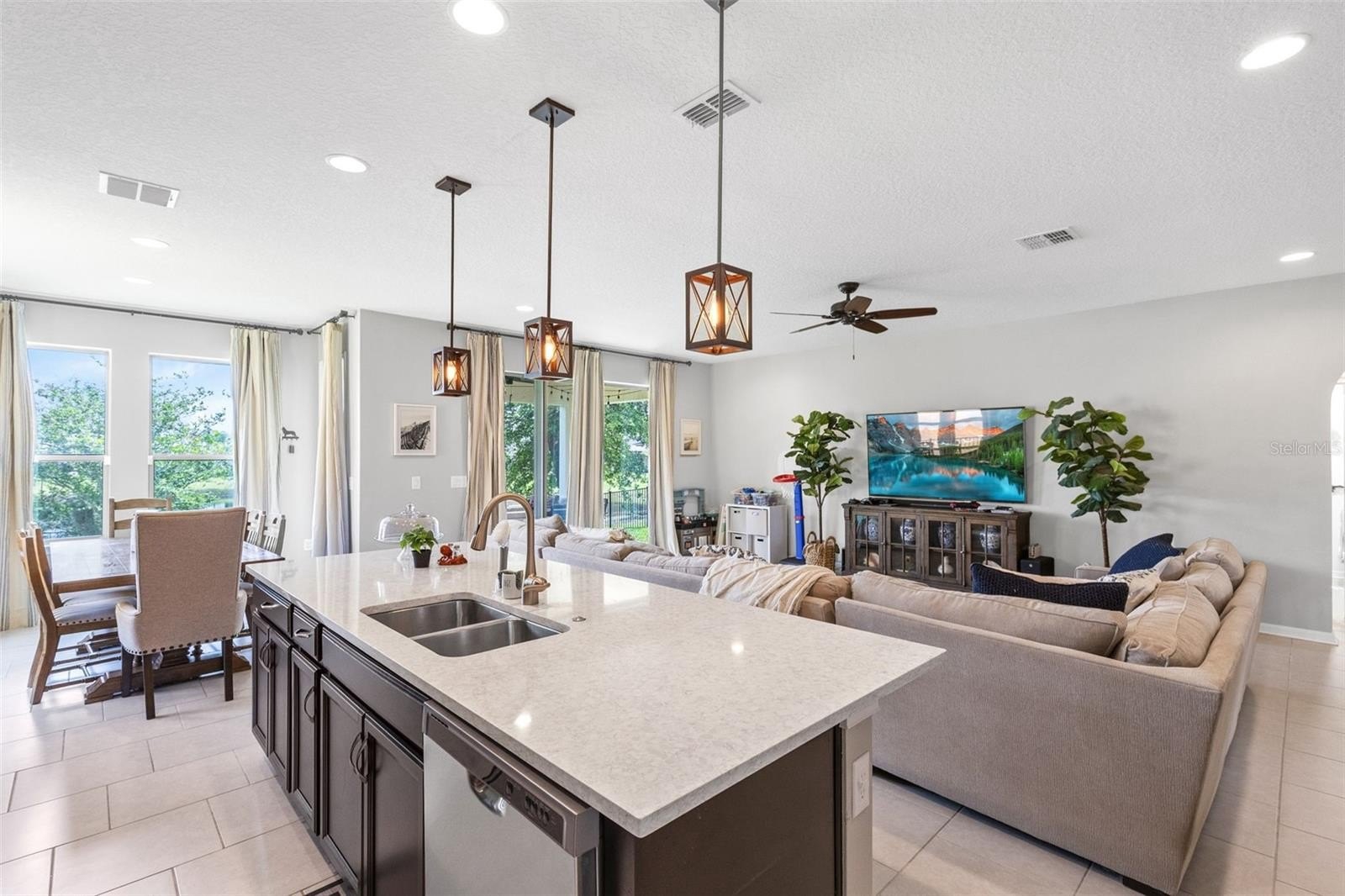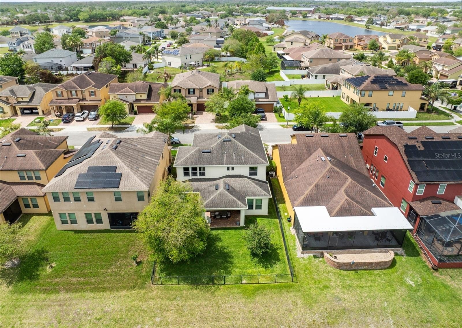 The property’s curb appeal is immediately evident with its paver driveway. The interior transitions beautifully to the outdoors, where a fully fenced-in backyard houses a beautifully paved lanai, creating the perfect spot for morning coffee or evening barbecues. The lot uniquely backs up to a serene retention pond, providing peaceful water views and no rear neighbors. Within the community, families can enjoy a charming neighborhood park, perfect for weekend play and gathering with neighbors.