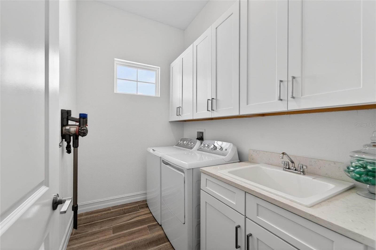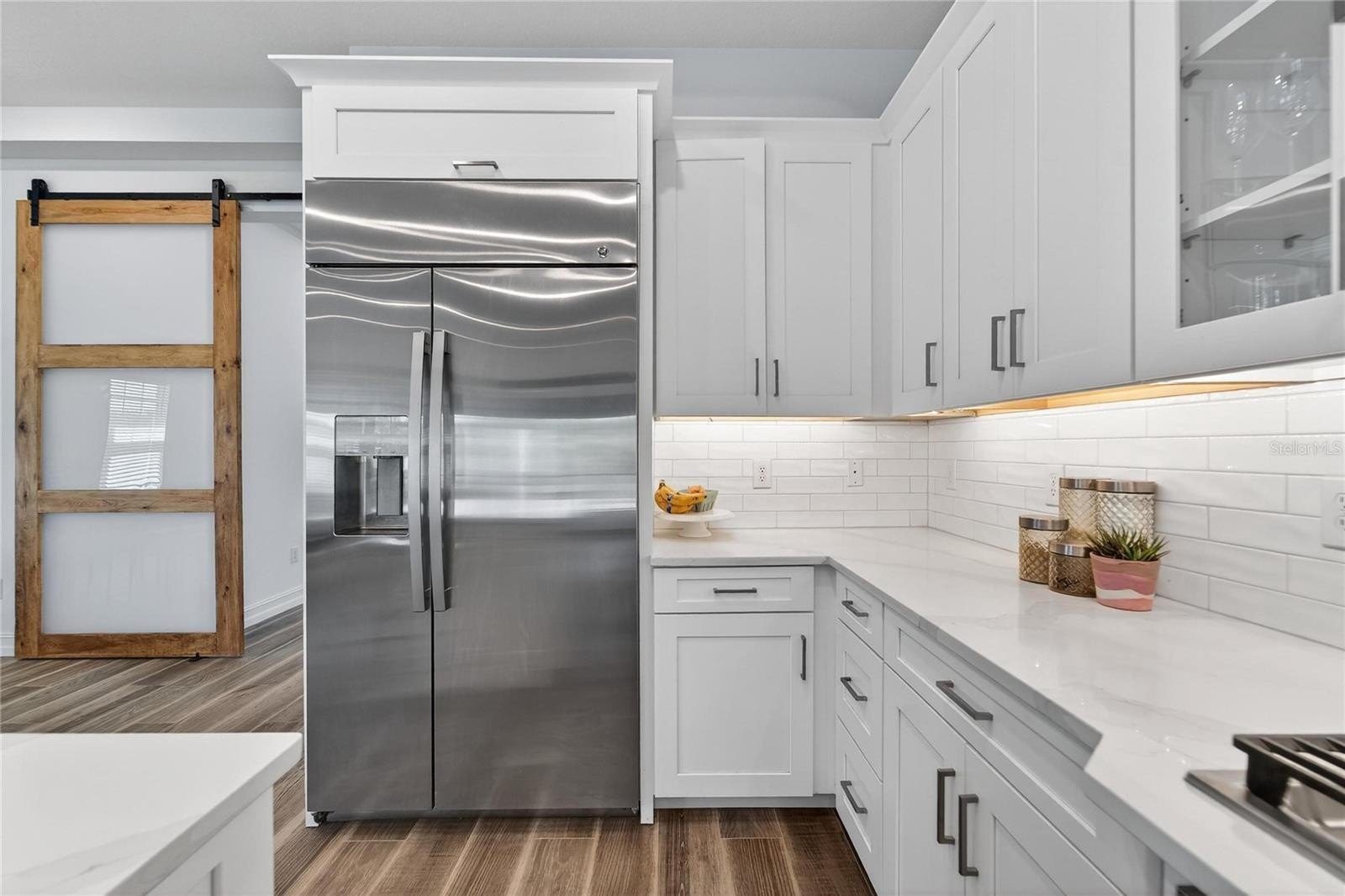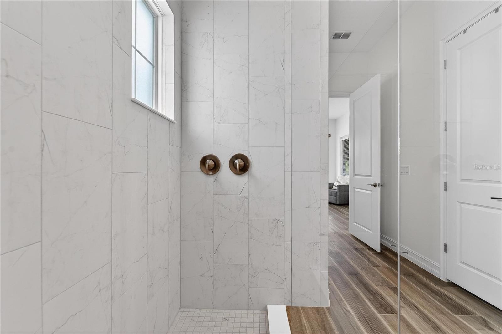 Additional enhancements such as an in-wall pest control system, water softener, and water purification system provide elevated details that support everyday convenience. Large sliding glass doors create a seamless transition between indoor and outdoor living, acting as a defining feature that enhances natural light and flow.