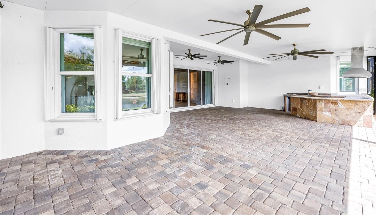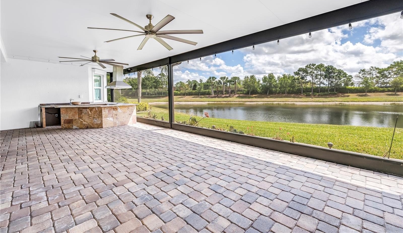 Outdoor living is just as impressive, with an extended covered and screened lanai overlooking the water with an outdoor kitchen. Whether hosting guests or enjoying a quiet evening at home, this space is perfectly designed for Florida living. Additional highlights include an 80-gallon water heater, water softener, accordion storm shutters, gutters, epoxy garage flooring, overhead storage, and upgraded security features.