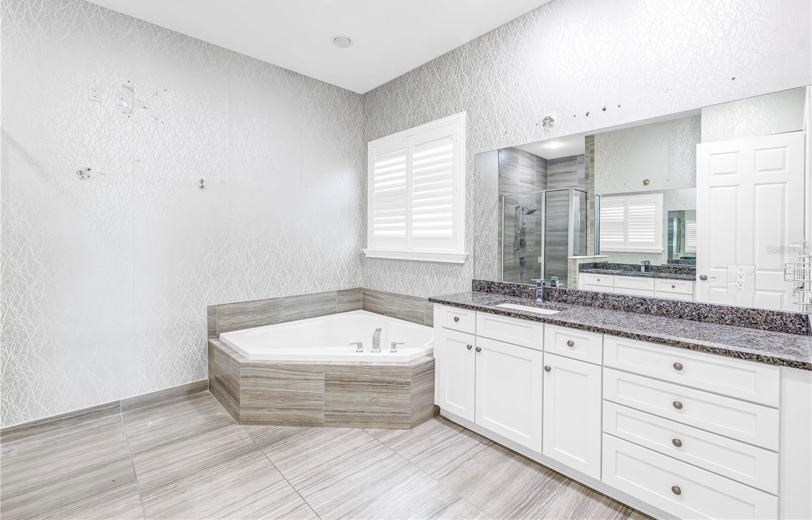 The primary suite is a true retreat with a coffered ceiling, bay sitting area, two large custom walk-in closets, and a luxurious bath with dual vanities, granite counters, a Roman tub, and a walk-in shower finished to the ceiling. The secondary bedrooms are privately positioned away from the primary suite, each with access to its own full bath, making the home ideal for guests. A large multipurpose club room adds flexibility for an office, media room, or additional lounge space.