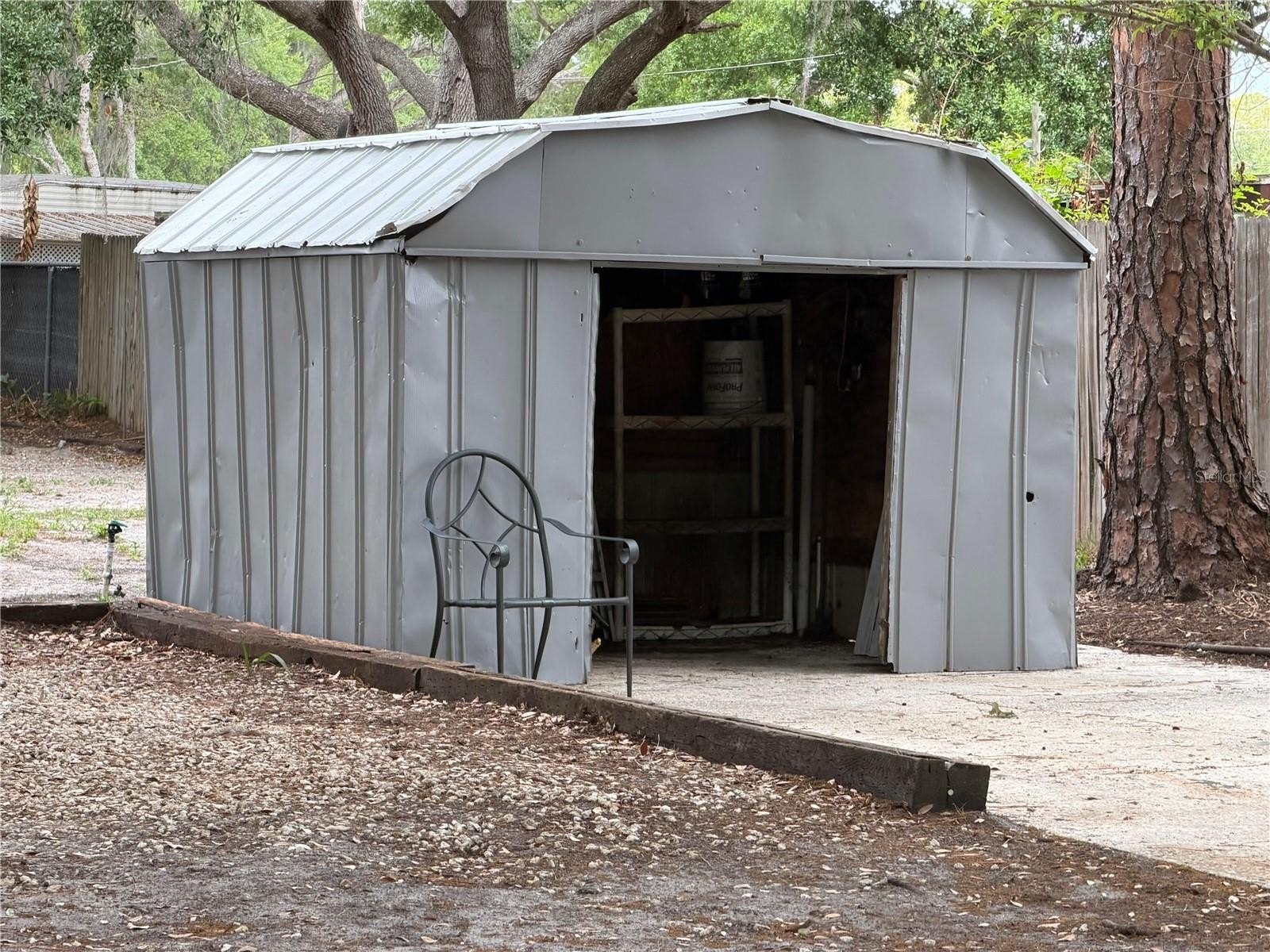 The property offers space for multiple vehicles, equipment, or other uses. The lot includes trees for shade, a storage shed, and a personal gate. The setting provides privacy while still being close to main roads and nearby areas. At one time there was an additional dwelling, mobile home was removed and public records still indicate. Driveway is an easement that Buyer may obtain a copy of the title work, but is responsible for verifying all measurements, easements, and future uses of land. There Is no HOA.