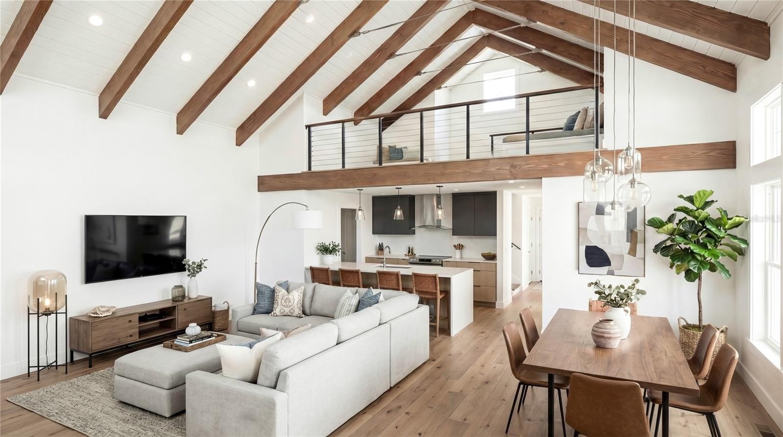 Pre-Construction. To be built. 45% down, 10% at drywall, the rest not due until closing. A big splash for Green Street Builders into the Holmes Beach market. They bring 35+ years of experience, and refreshing coastal elegance at a more affordable price point. Not everyone has $10 million for a beach home, we think you'll like these offerings. This plan has 4 defined sleeping areas per side (including an open air loft), high-functionality, and open concept design with cathedral-like ceilings. Quartz waterfall counters, modern sleek cabinets, lots of glass. Same stuff everyone likes in new construction, just more obtainable. We step outside to the deck overlooking the pool area. Under-roof, a massive, shaded entertaining space. Room for Ping Pong, dining, other games, a great TV set up, lounging, or however you see it. It's a lush, tropical, vacation themed setting for you to enjoy... or for your guests to come back to year after year. See all bedrooms and living areas in attached floor plan.