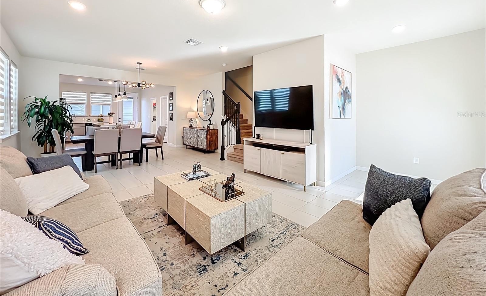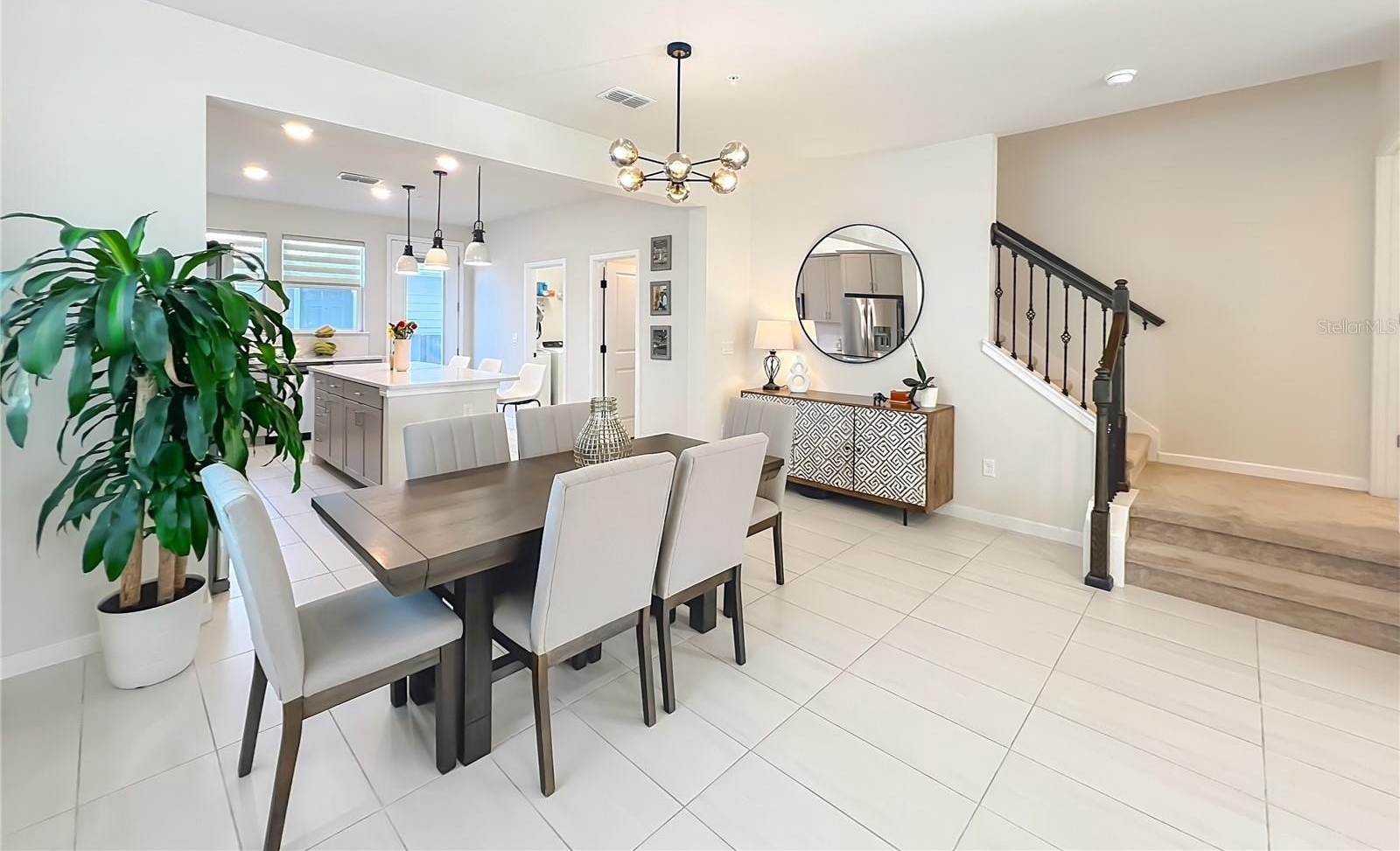 Inside, the spacious foyer opens to a bright, open-concept living and dining area filled with natural light. The layout allows flexibility for furniture placement and entertaining. Ceramic tile runs throughout the first floor, offering both style and easy upkeep.