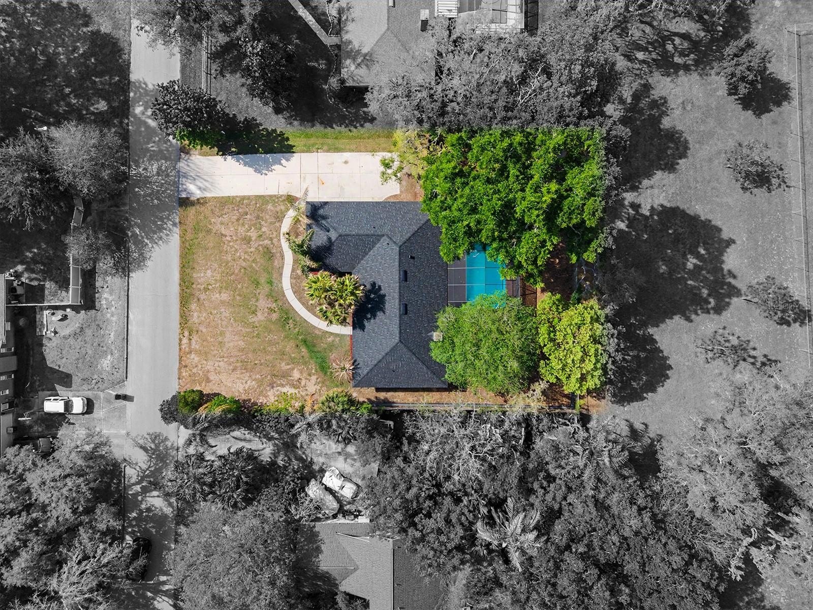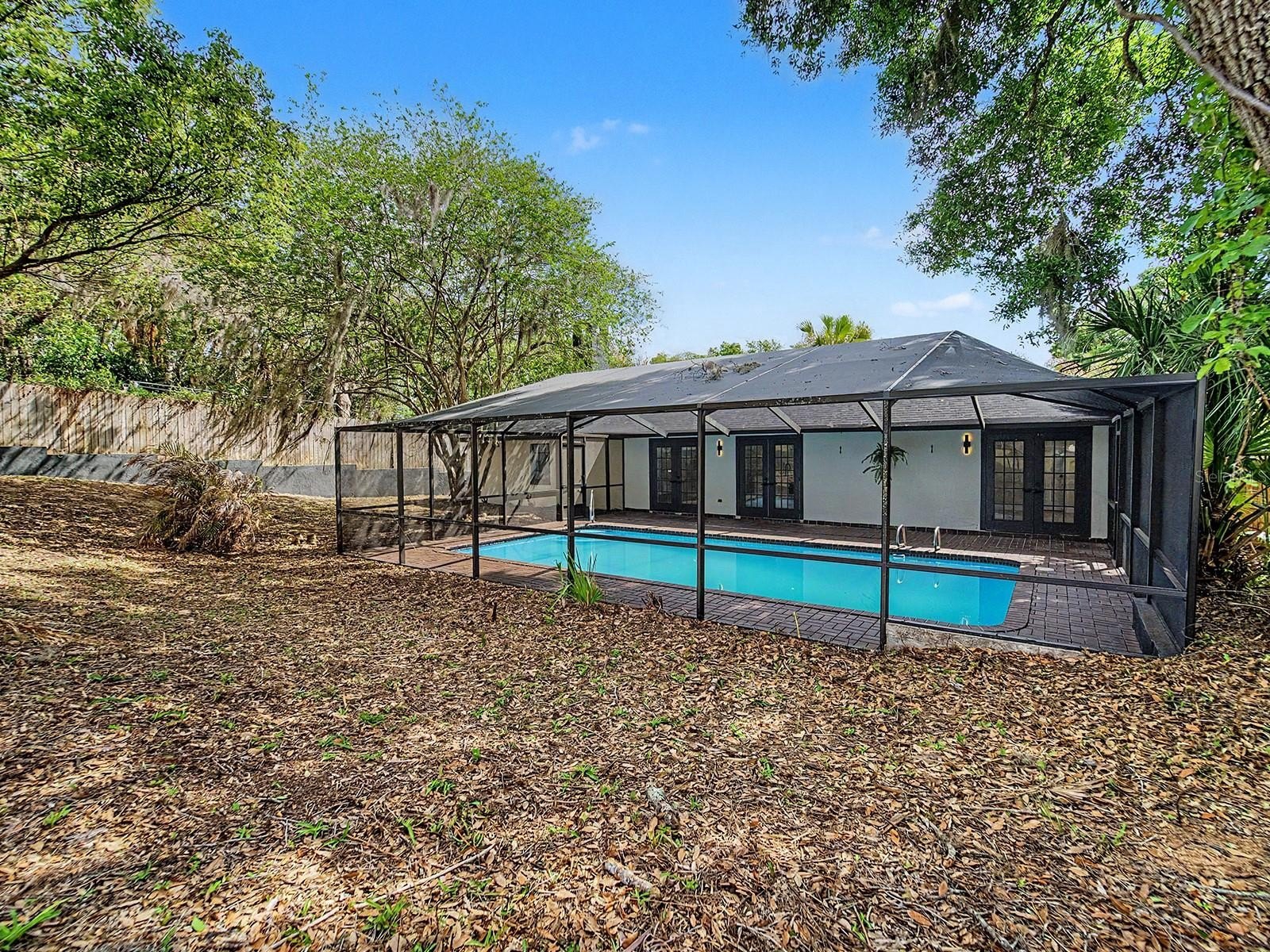 Step outside to enjoy a private backyard with a screened-in pool surrounded by pavers, all set on a fully fenced 0.30-acre lot, larger than a quarter acre, offering added space and privacy.
