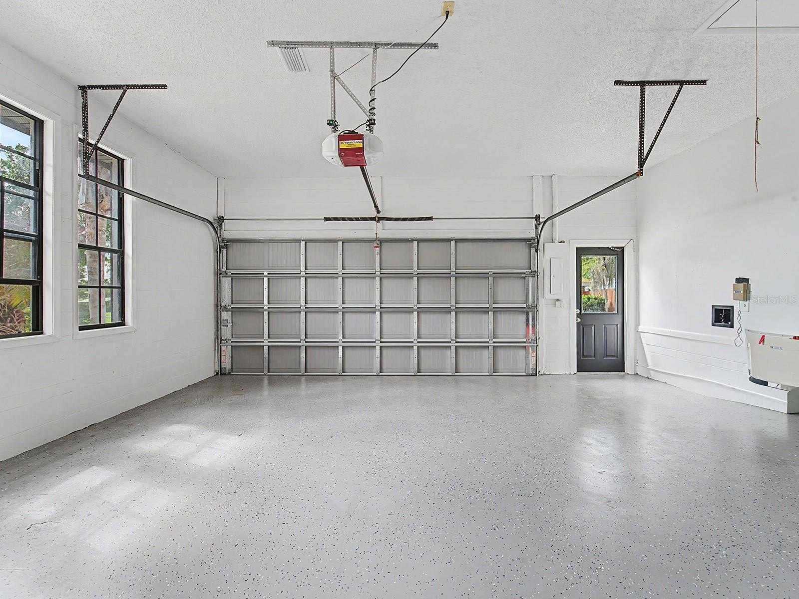 Additional features include a wood-burning fireplace, updated lighting with spotlights, a guest bathroom with tub and tile, and a side-entry attached garage with an extended driveway, providing a more private and functional layout. The garage door and motor are new.