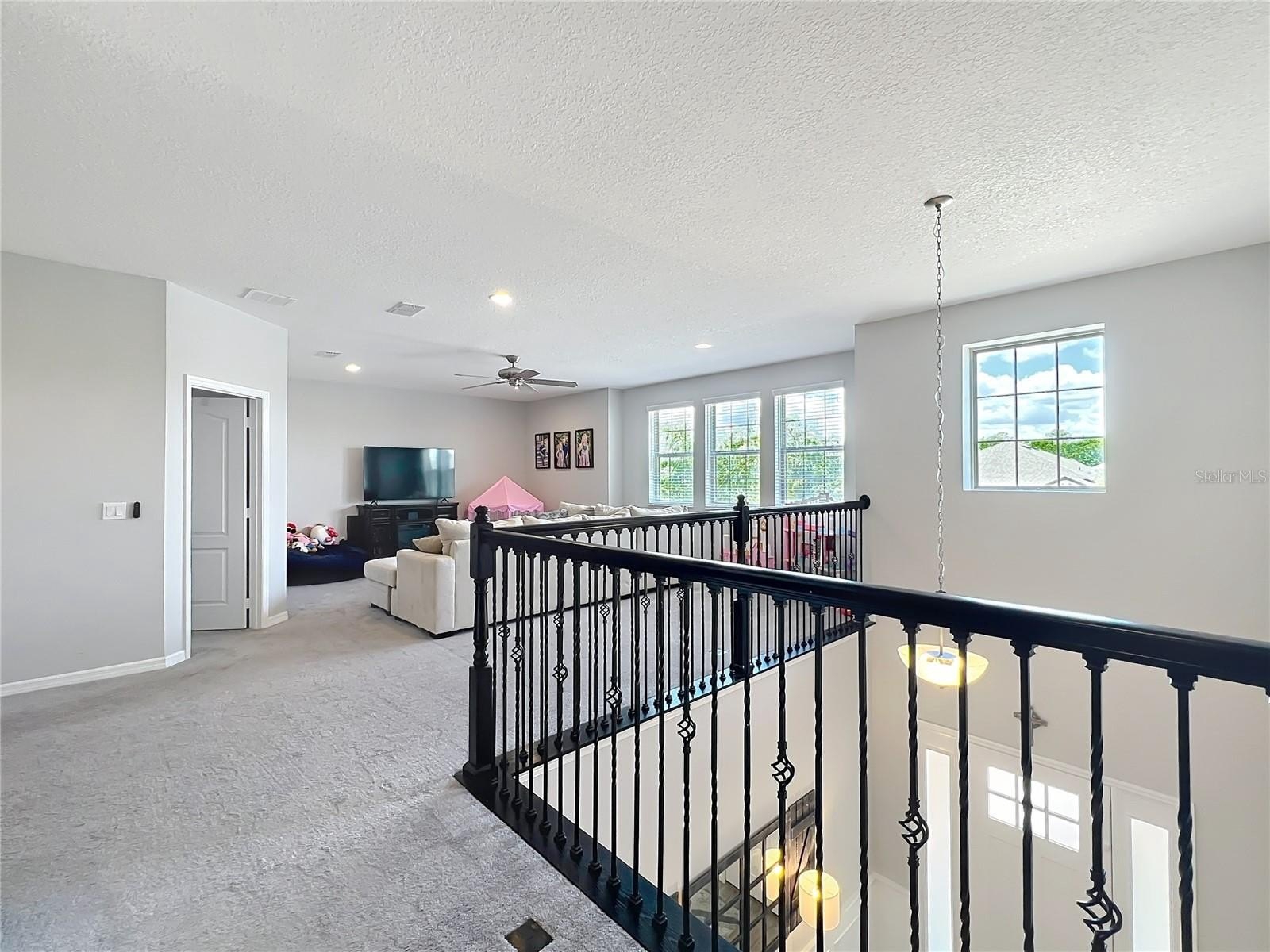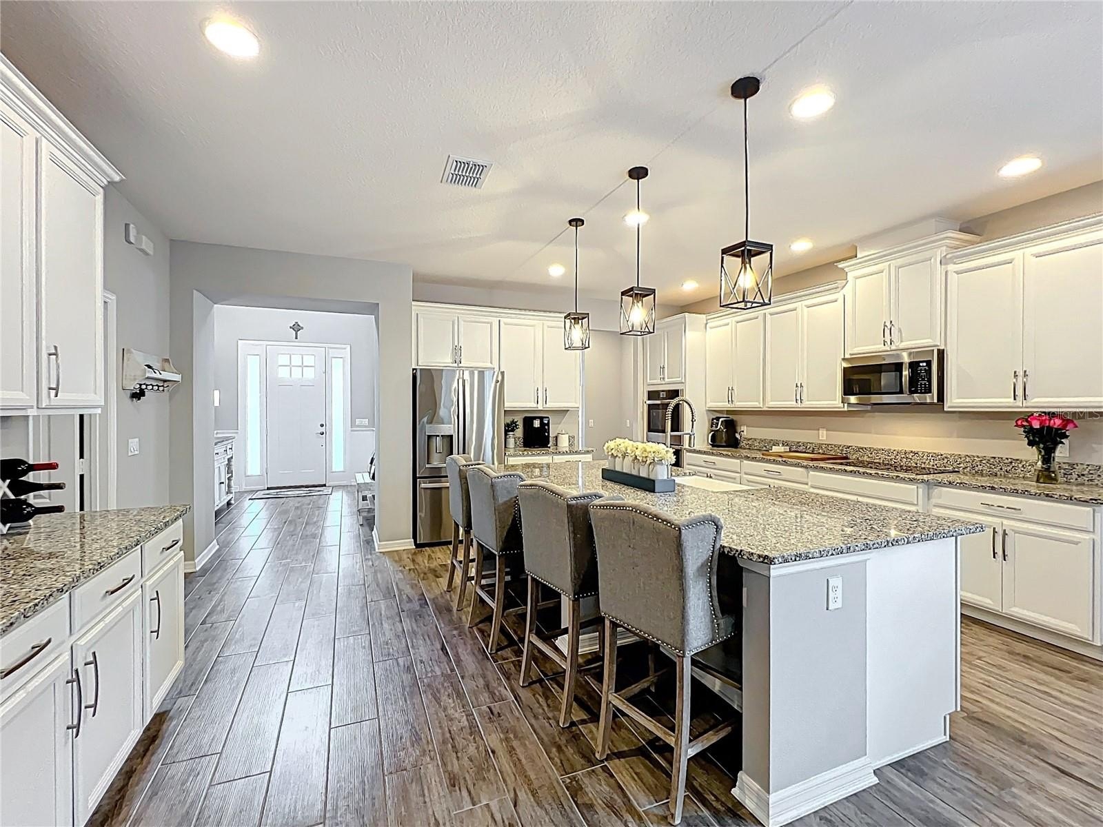 This Stunning 5-bedroom, 3-bathroom pool home in a newer gated community offers the perfect blend of luxury, comfort, and functionality-designed with every detail in mind. From the moment you arrive, you'll be impressed by the well-manicured yard and extended driveway, providing both curb appeal and convenient parking. The welcoming front porch with a charming space for a swing sets the tone for the warmth and elegance that awaits inside. Step through the grand entryway adorned with beautiful wainscoting and into a thoughtfully designed layout with amazing wood-look tile. The formal dining room features matching wainscoting and is perfect for hosting gatherings. The gourmet kitchen is a chef's dream, complete with a large center island with pendant lights, granite countertops, stainless steel appliances, double ovens, a walk-in pantry and a spacious casual dining area. The kitchen flows seamlessly into a generously sized family room featuring an electric fireplace, creating an inviting space for everyday living and entertaining. A guest bedroom and full bath are conveniently located on the first floor, along with a spacious laundry room that includes a built-in storage bench for added functionality. Upstairs, a beautiful wood staircase with wrought-iron railings leads to an expansive loft-ideal as a media room, home office, or playroom. Three secondary bedrooms all feature walk-in closets, while the luxurious primary suite impresses with a double-door entry, a spa-like bathroom with a garden tub, seamless glass shower, dual vanities, and an enormous walk-in closet. Step outside to your private backyard oasis. The saltwater pool features color-changing LED lights and a sun shelf for lounging or play. A panoramic screen enclosure offers uninterrupted views of the lush conservation area beyond the enclosure which has an extended roof for an added entertainment area. The fenced yard and landscaped borders provide added privacy. Additional features include a 3-car tandem garage, 2 AC units for zoned comfort, Brita Pro whole-house water filter and softener system, updated lighting, and a Simply Safe Security System that covers the doors and windows downstairs. Located in one of Seminole County's most sought after areas-zoned for top-rated schools and conveniently located near Siemens, Lockheed Martin, Research Park and easy access to SR-417. This is more than a home-It's A Lifestyle. Don't miss your chance to own this beautifully upgraded, move-in-ready retreat!