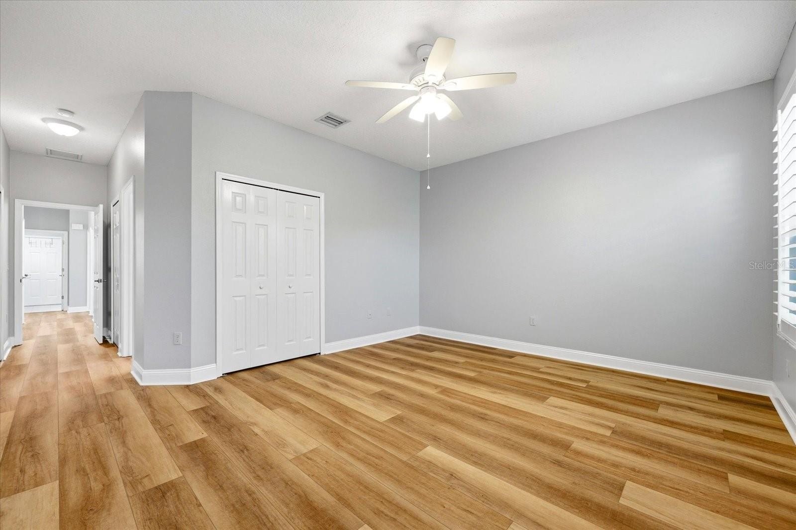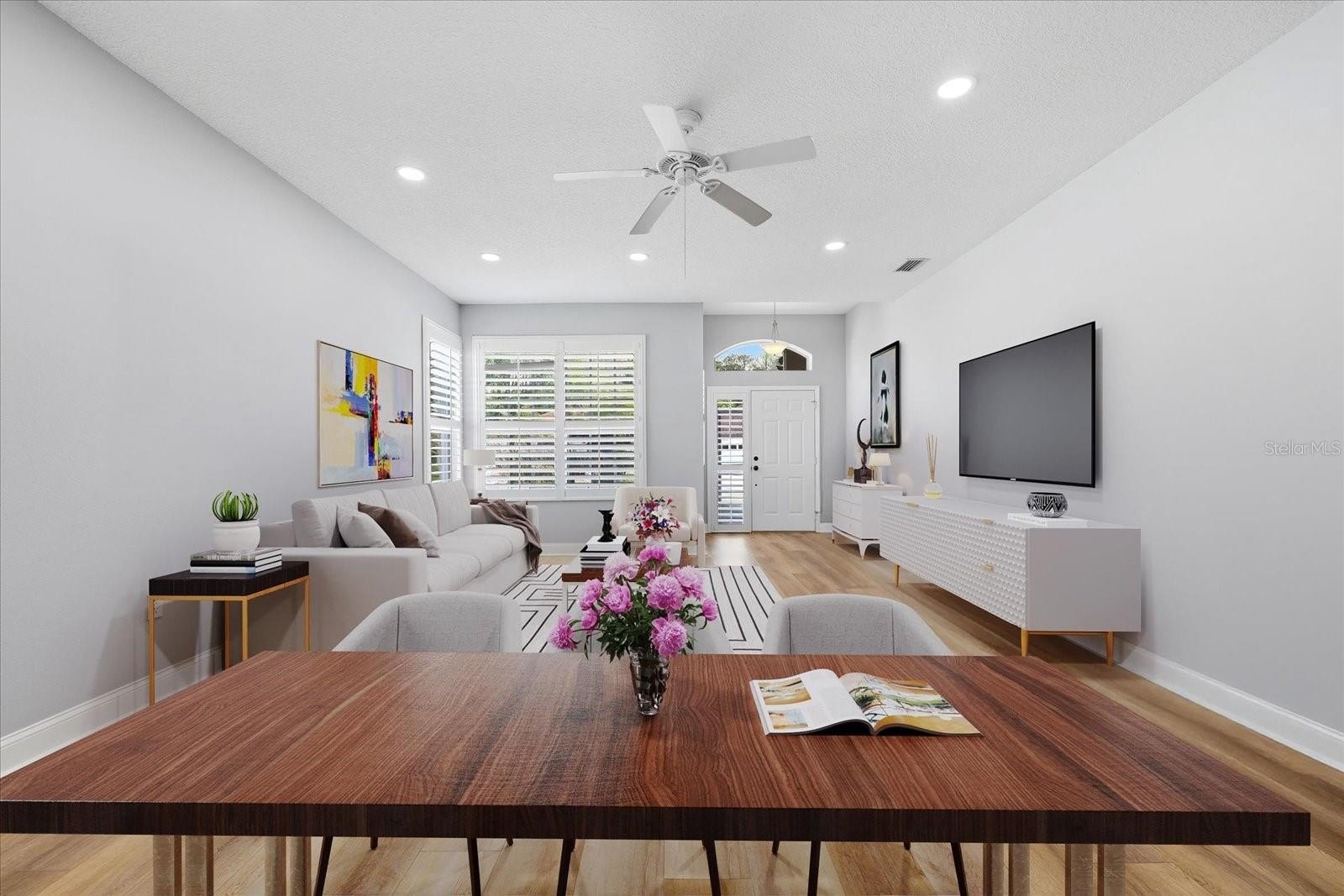 Inside, the home features nearly 1,900 square feet of living space with luxury vinyl tile flooring throughout and an abundance of natural light streaming through numerous windows, all accented with timeless plantation shutters. The spacious layout offers plenty of room for both relaxing and entertaining, with generously sized bedrooms and abundant storage throughout.