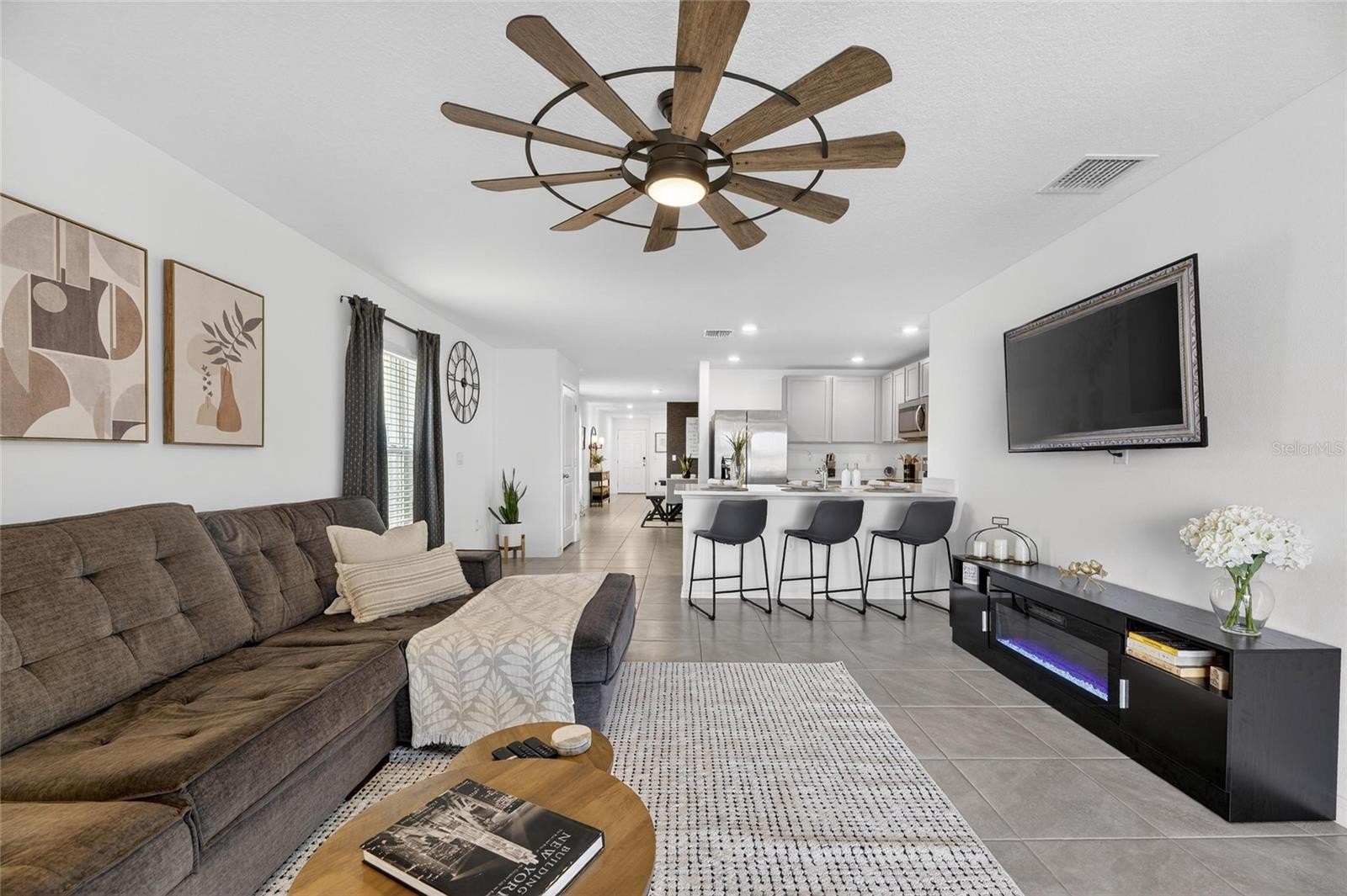 Welcome to this beautifully maintained, move-in ready 2024-built home in the growing Berry Bay community of Wimauma, offering 3 bedrooms, 2 bathrooms, and 1,560 square feet of thoughtfully designed living space. From the moment you step inside, you’ll notice the clean, modern feel with tile flooring flowing through the main living and dining areas for both style and easy maintenance. The open-concept layout brings the kitchen, dining, and living spaces together, creating a natural flow that works perfectly for everyday living and entertaining. The kitchen features granite countertops, stainless steel appliances, ample cabinet space, and Smart Home features that allow you to control the front door lock and thermostat with ease. Step outside to a fully fenced backyard with extended pavers off the lanai and peaceful water views, a great space to unwind or gather with friends and family. Additional features include a water softener system and in-ground sprinkler system for added convenience. Berry Bay offers resort-style amenities including a pool, clubhouse, picnic area, dog park, playground, basketball court, and pickleball courts. Conveniently located off US-301 with quick access to I-75, you’re just a short drive to Tampa, St. Petersburg, and Sarasota, with shopping and dining nearby.