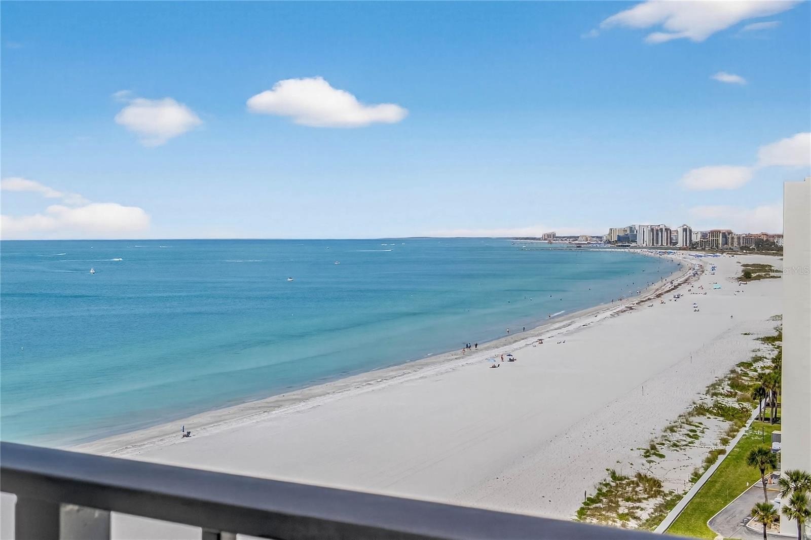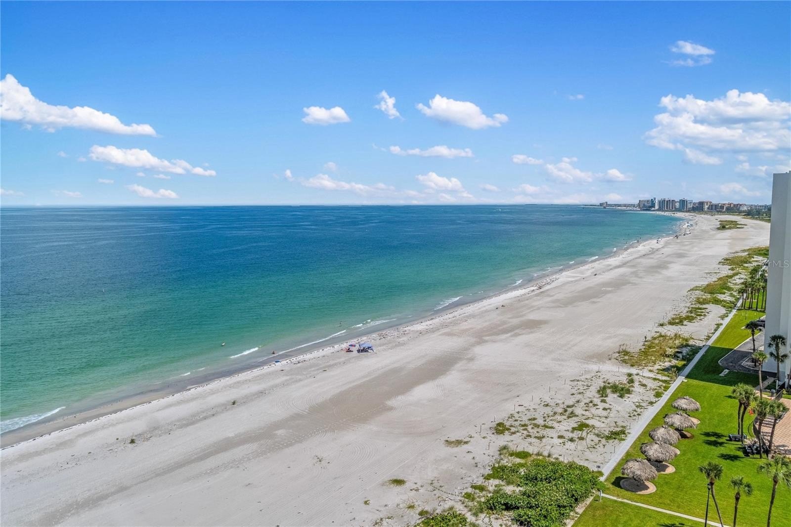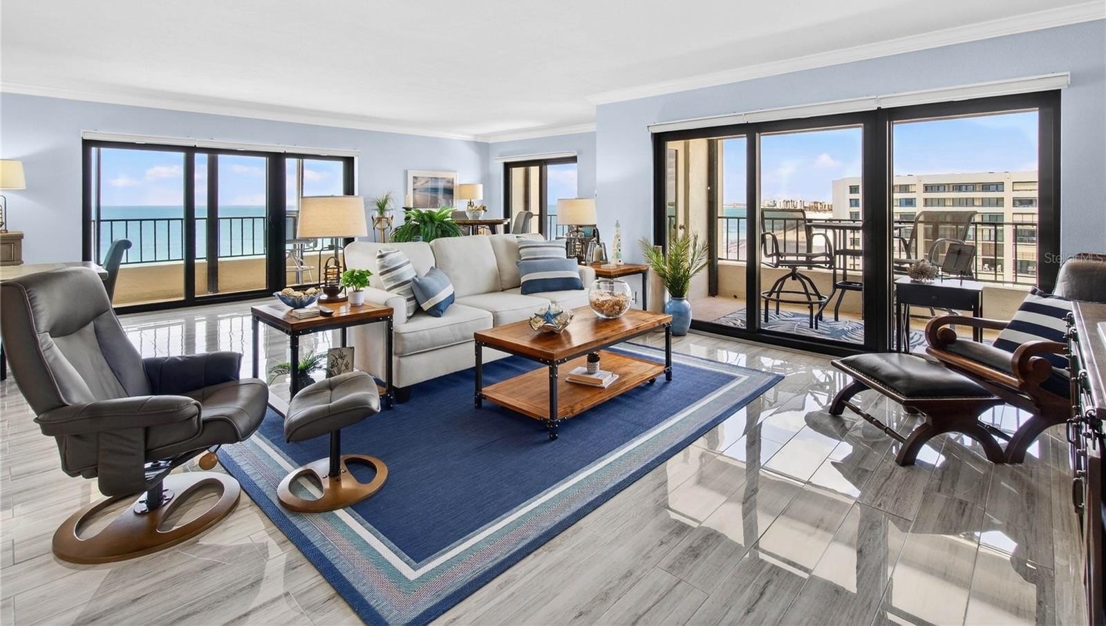 ***PLEASE CLICK ON VIRTUAL TOUR LINK*** Where the Gulf meets the sky - an 11th-Floor Gulf-to-Bay Sanctuary on Sand Key! High above the shoreline, where morning light spills across the water and evenings melt into vibrant sunsets, lies a residence that captures the very essence of coastal luxury. This unit is being offered fully furnished including all furniture, appliances, kitchenware, linens, decor and artwork. From the moment you step inside this 11th-floor corner retreat, the world beyond disappears. Walls of glass frame unobstructed views of both the Gulf of Mexico and the Intracoastal Waterway, drawing your gaze to an endless horizon. Three private balconies—totaling over 500 square feet of outdoor living space—invite you to savor every sunrise, every sunset, every salty breeze. In 2020, this residence was completely transformed into a turnkey showpiece. Every detail was carefully chosen by the seller for beauty, function, and harmony. The open-concept great room flows effortlessly from living to dining to kitchen, with marble countertops, soft-close shaker cabinetry, under-cabinet lighting, and premium stainless appliances creating an entertainer’s dream. Glossy slender-plank ceramic tile flooring runs throughout, catching the light and amplifying the home’s modern coastal aesthetic. Every door and window opening is equipped with exterior hurricane shutters for ultimate storm protection, and custom interior solar shades—translucent in the great room to filter light while preserving views, and opaque in the bedrooms for complete privacy—offer both elegance and functionality. Private spaces, perfected: The primary suite is a masterclass in retreat design—sliding doors open to a private balcony, while the en-suite bath offers dual vanities, a walk-in shower, and an oversized walk-in closet. The guest suite offers balcony access of its own, ensuring visitors experience the same breathtaking views and comfort. Prime, Secluded Beachfront - Set on one of Sand Key’s most coveted stretches of shoreline, this residence offers the rare combination of direct beachfront access and serene seclusion. Here, you can step from the lobby to the sand in minutes—yet the private, uncrowded setting makes it feel worlds away from the bustle of nearby Clearwater Beach. Miles of pristine coastline are yours to explore, with only the sound of waves and the call of seabirds as your soundtrack. Beyond your door, amenities rival the finest for resort living year round: a heated waterfront pool, grilling station, poolside tiki bar, and beachfront tiki huts create the ultimate backdrop for leisure. There's also a clubhouse with full kitchen, lounge area and bathrooms on the 2nd floor. Assigned under-building parking, a private storage unit, and a pet-friendly policy add everyday convenience. Guard gate and keyed entry lobby provide peace of mind. With Milestone & SIRS reports complete, monthly fees covering flood insurance and hurricane shutters throughout, peace of mind is built right in. Monthly fee also include water, sewer, trash, cable, and internet. Perfectly positioned just a short distance from Sand Key Beach State Park (nature trials and dog park), Bay Park (pickleball/tennis courts and playgound), Shops On Sand Key (dining and retail) and Clearwater Beach’s vibrant dining, boutique shopping, and marine activites. This isn’t simply a condo. It’s your front-row seat to the Gulf - turnkey, timeless and its waiting for you!
