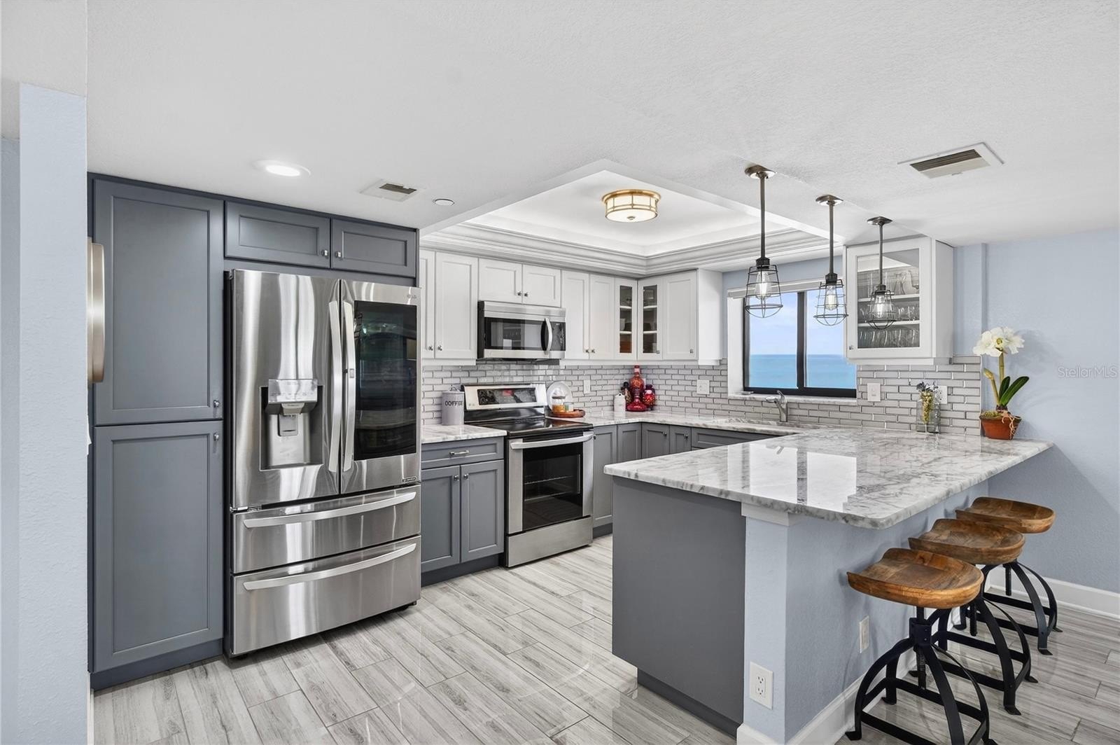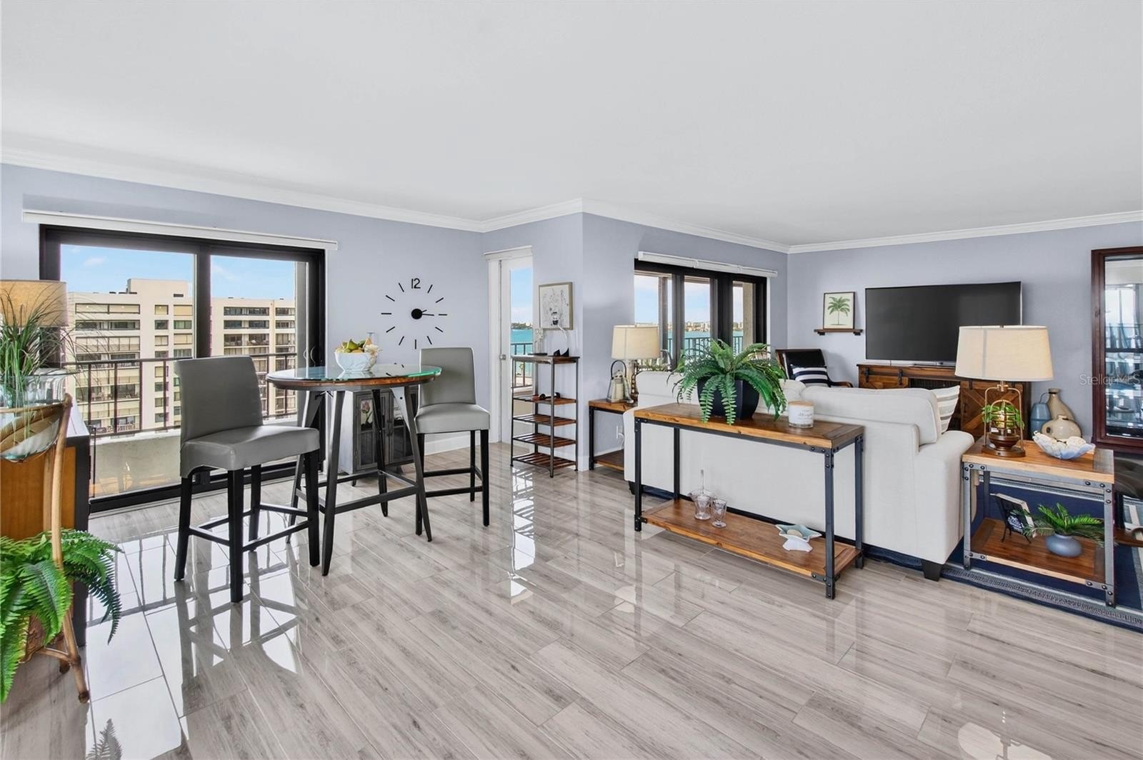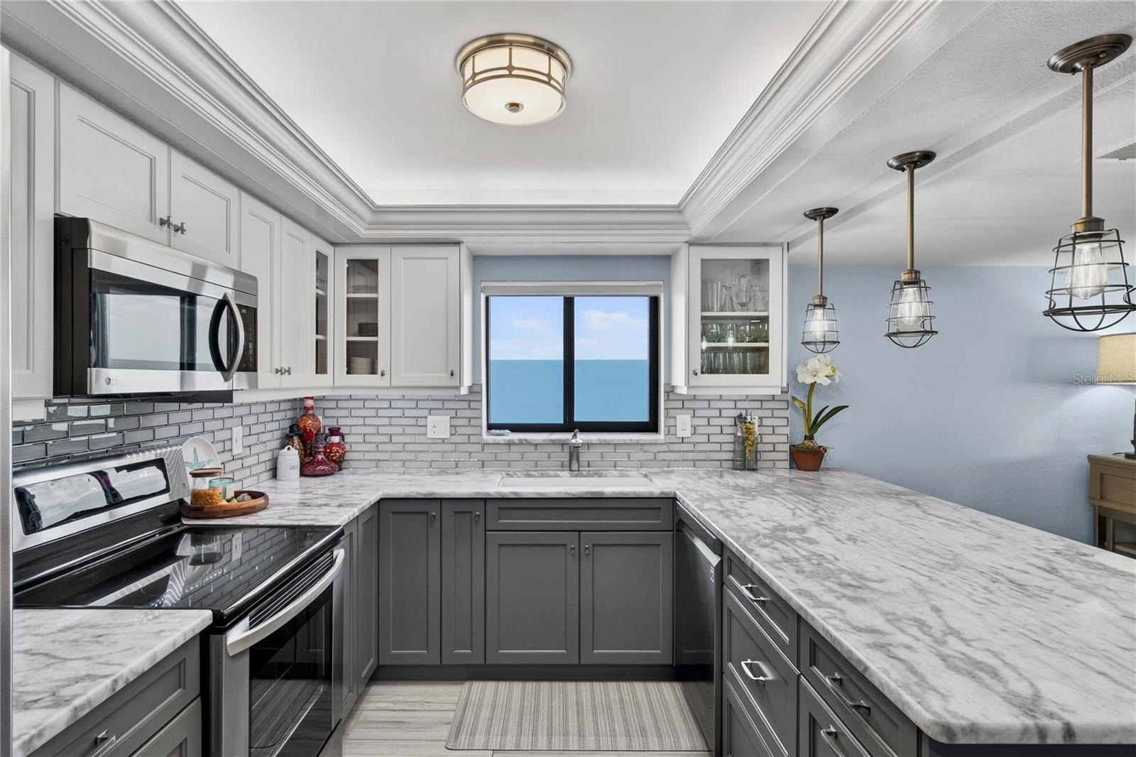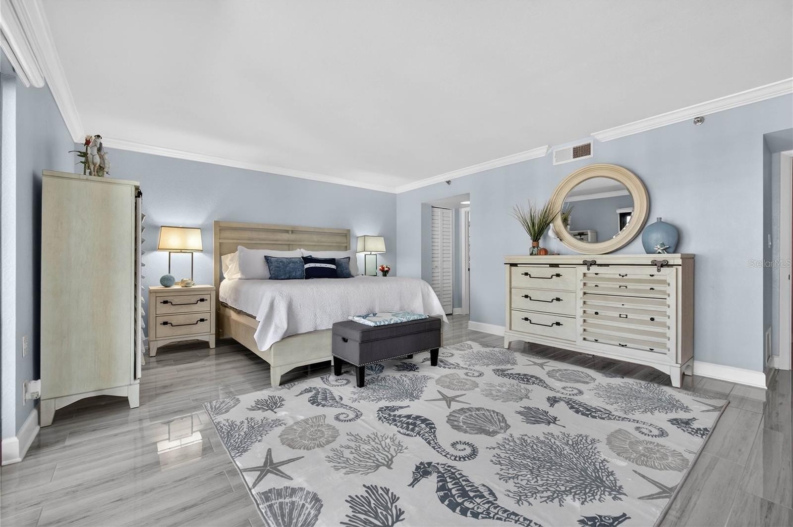 ***PLEASE CLICK ON VIRTUAL TOUR LINK*** Where the Gulf meets the sky - an 11th-Floor Gulf-to-Bay Sanctuary on Sand Key! High above the shoreline, where morning light spills across the water and evenings melt into vibrant sunsets, lies a residence that captures the very essence of coastal luxury. This unit is being offered fully furnished including all furniture, appliances, kitchenware, linens, decor and artwork. From the moment you step inside this 11th-floor corner retreat, the world beyond disappears. Walls of glass frame unobstructed views of both the Gulf of Mexico and the Intracoastal Waterway, drawing your gaze to an endless horizon. Three private balconies—totaling over 500 square feet of outdoor living space—invite you to savor every sunrise, every sunset, every salty breeze. In 2020, this residence was completely transformed into a turnkey showpiece. Every detail was carefully chosen by the seller for beauty, function, and harmony. The open-concept great room flows effortlessly from living to dining to kitchen, with marble countertops, soft-close shaker cabinetry, under-cabinet lighting, and premium stainless appliances creating an entertainer’s dream. Glossy slender-plank ceramic tile flooring runs throughout, catching the light and amplifying the home’s modern coastal aesthetic. Every door and window opening is equipped with exterior hurricane shutters for ultimate storm protection, and custom interior solar shades—translucent in the great room to filter light while preserving views, and opaque in the bedrooms for complete privacy—offer both elegance and functionality. Private spaces, perfected: The primary suite is a masterclass in retreat design—sliding doors open to a private balcony, while the en-suite bath offers dual vanities, a walk-in shower, and an oversized walk-in closet. The guest suite offers balcony access of its own, ensuring visitors experience the same breathtaking views and comfort. Prime, Secluded Beachfront - Set on one of Sand Key’s most coveted stretches of shoreline, this residence offers the rare combination of direct beachfront access and serene seclusion. Here, you can step from the lobby to the sand in minutes—yet the private, uncrowded setting makes it feel worlds away from the bustle of nearby Clearwater Beach. Miles of pristine coastline are yours to explore, with only the sound of waves and the call of seabirds as your soundtrack. Beyond your door, amenities rival the finest for resort living year round: a heated waterfront pool, grilling station, poolside tiki bar, and beachfront tiki huts create the ultimate backdrop for leisure. There's also a clubhouse with full kitchen, lounge area and bathrooms on the 2nd floor. Assigned under-building parking, a private storage unit, and a pet-friendly policy add everyday convenience. Guard gate and keyed entry lobby provide peace of mind. With Milestone & SIRS reports complete, monthly fees covering flood insurance and hurricane shutters throughout, peace of mind is built right in. Monthly fee also include water, sewer, trash, cable, and internet. Perfectly positioned just a short distance from Sand Key Beach State Park (nature trials and dog park), Bay Park (pickleball/tennis courts and playgound), Shops On Sand Key (dining and retail) and Clearwater Beach’s vibrant dining, boutique shopping, and marine activites. This isn’t simply a condo. It’s your front-row seat to the Gulf - turnkey, timeless and its waiting for you!