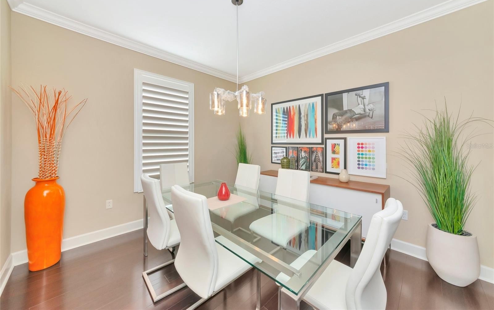 The interior has a consistent, finished feel with tray ceilings, crown molding, and updated lighting without being overdone.