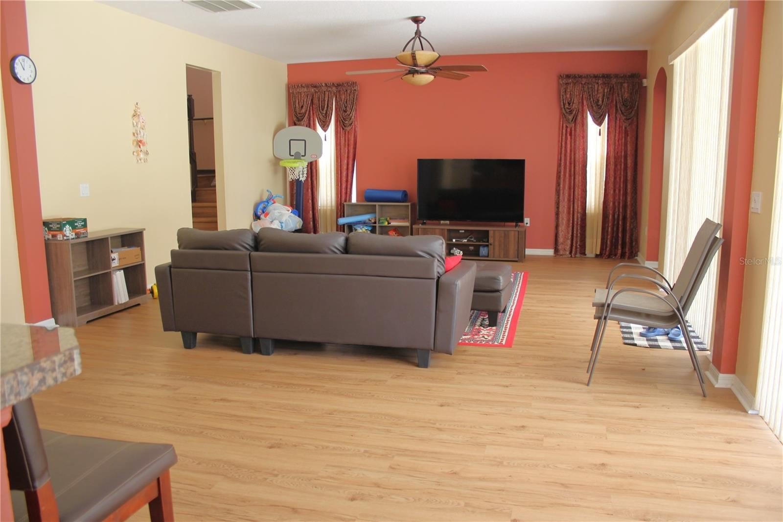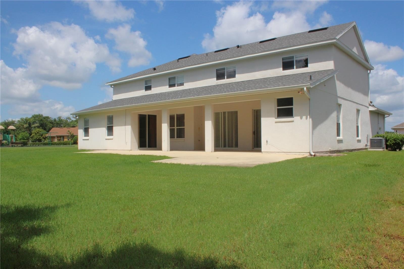Welcome to this stunning 5-bedroom, 4-bathroom home, perfectly situated on a generous 1/3-acre lot with no rear neighbors for added privacy. With a NEW roof, 2 NEW A/C units, and NEW laminate flooring, this home is truly move-in ready and built for comfortable, modern living. The first floor features a spacious living area just off the kitchen- ideal for gatherings and family time- as well as a breakfast nook and convenient access to a full bathroom that opens to the covered back porch. At the front of the home, you'll find a formal dining room and a versatile den or office space. The primary suite, tucked at the rear of the home for added privacy, includes sliding doors to the covered porch and a luxurious en-suite bathroom with dual sinks, a garden tub, and separate walk-in shower. Upstairs, you'll discover 4 additional bedrooms, 2 full bathrooms, and a large bonus room- perfect as a playroom, media room, or home gym. Don't miss your chance to own this beautifully updated home that combines space, functionality, and privacy in a prime location.