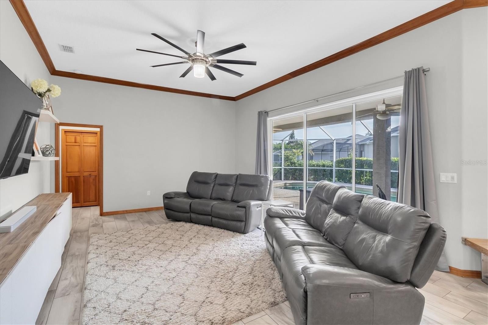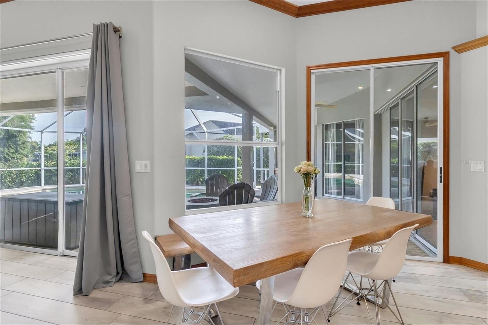 PRIVACY & TRANQUILITY in the HEART OF TRINITY, first time on the market. Don't miss this SPRAWLING ONE STORY HOME located on a .31 acre conservation pond view lot. Built by Samuelsen Builders, this highly sought after, perfectly designed tri-split floor plan features 4 bedrooms, 3 bathrooms, 3 car side load garage with 2634 square feet of living space. Just inside the double front entry doors you will notice ample natural light streaming in along with the newer porcelain tile floors that run throughout most of the home and the beautiful views from the formal living room pocketing sliding glass doors. To your left is a home office featuring double glass pocket doors, transom window and floor to ceiling built in bookshelves with storage cabinets. Gather your family in the gourmet kitchen, the heart of the home. The chef-inspired kitchen is fully equipped for entertaining, featuring a center island, corian countertops, new stainless steel appliances, recessed and under-counter lighting, tile backsplash, closet pantry, a breakfast nook and breakfast bar with seating for 4 all overlooking the expansive family room. The family room features soaring ceilings, crown molding with pocketing sliding glass doors to the outdoor living spaces and pool, perfect for entertaining. The generous 14x18 primary suite retreat includes soaring ceilings, dual walk-in closets, and a large en-suite bathroom with a garden tub, walk-in shower, two separate vanities, private commode and a linen closet. Just off the family room are 2 secondary bedrooms and a bath that can be privatized with a conveniently located pocket door. The 4th bedroom and pool bath are located at the back of the home and can also be sectioned off by a pocket door. Additional features of the home include NEST Thermostat, smart home features, high ceilings, crown molding, upgraded ceiling fans and light fixtures, large inside laundry room with a laundry sink and storage closet, solid wood doors, oversized garage with pull down staircase for attic access, newer roof (2018), new interior and exterior paint (2020), water heater (2014), HVAC (2010), ring door bell with 3 outdoor security cameras, pre-plumbed for a water softener, central vac, lots of storage closets & cabinets and two fenced-in yard areas and a rainbird irrigation system. Enjoy true Florida living on the sprawling covered lanai, overlooking the pool complete with a small outdoor wet bar area with convenient access from most rooms, the home is perfectly designed for entertaining as well as everyday enjoyment. LOW annual HOA dues and NO CDD fees is another reason to love this community. This HIGHLY SOUGHT AFTER TRINITY OAKS COMMUNITY HAS A PLAYGROUND & WALKABILITY to TOP RATED SCHOOLS. It is near golf courses, Starkey/Suncoast/Pinellas Trails, JW GILLS YMCA, shopping, restaurants, medical facilities, the TRINITY COMMUNITY PARK WITH DOG PARKS and PICKLEBALL COURTS and a NICE WALKING TRAIL AROUND A BEAUTIFUL POND all with easy access to Tampa International Airport, St. Pete/Clearwater International Airport, cultural centers, beaches and so much more. MUST SEE~