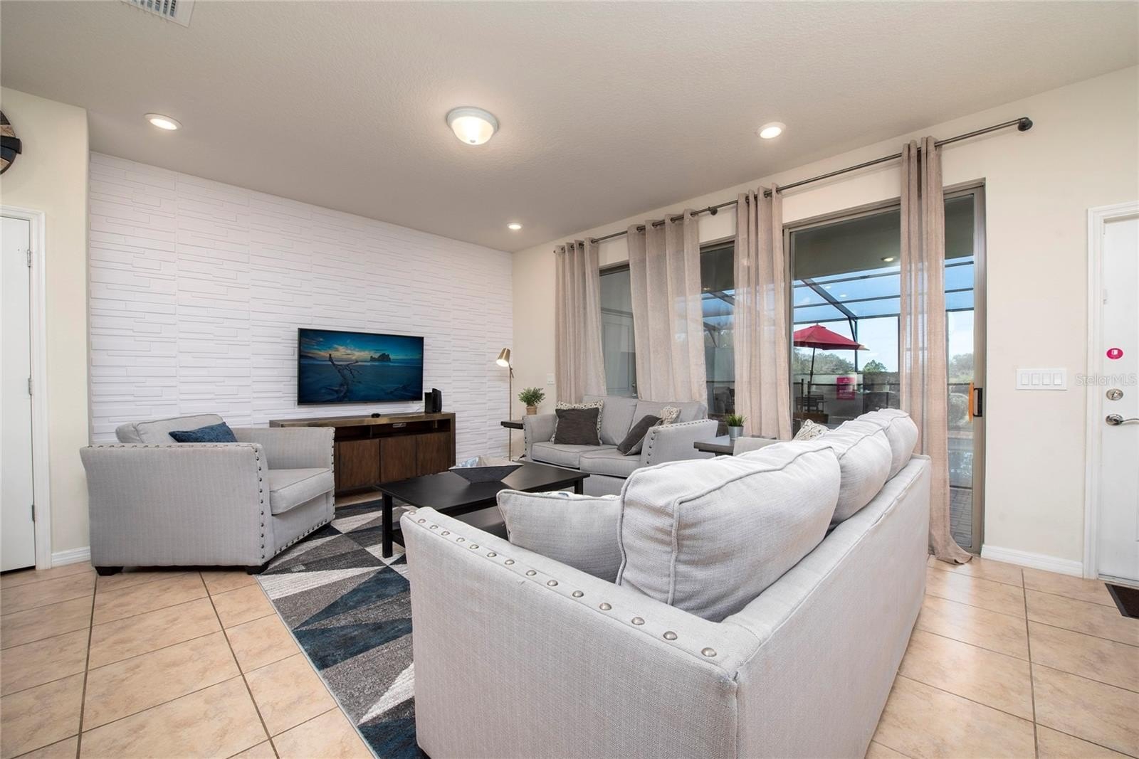 Fully furnished 5-bedroom, 4.5-bathroom townhome located in the highly sought-after Solterra community. This property is designed for short-term rental use and offers a functional open-concept layout with a spacious kitchen, large island, and seamless indoor-outdoor flow through sliding glass doors.