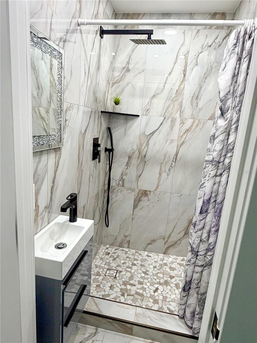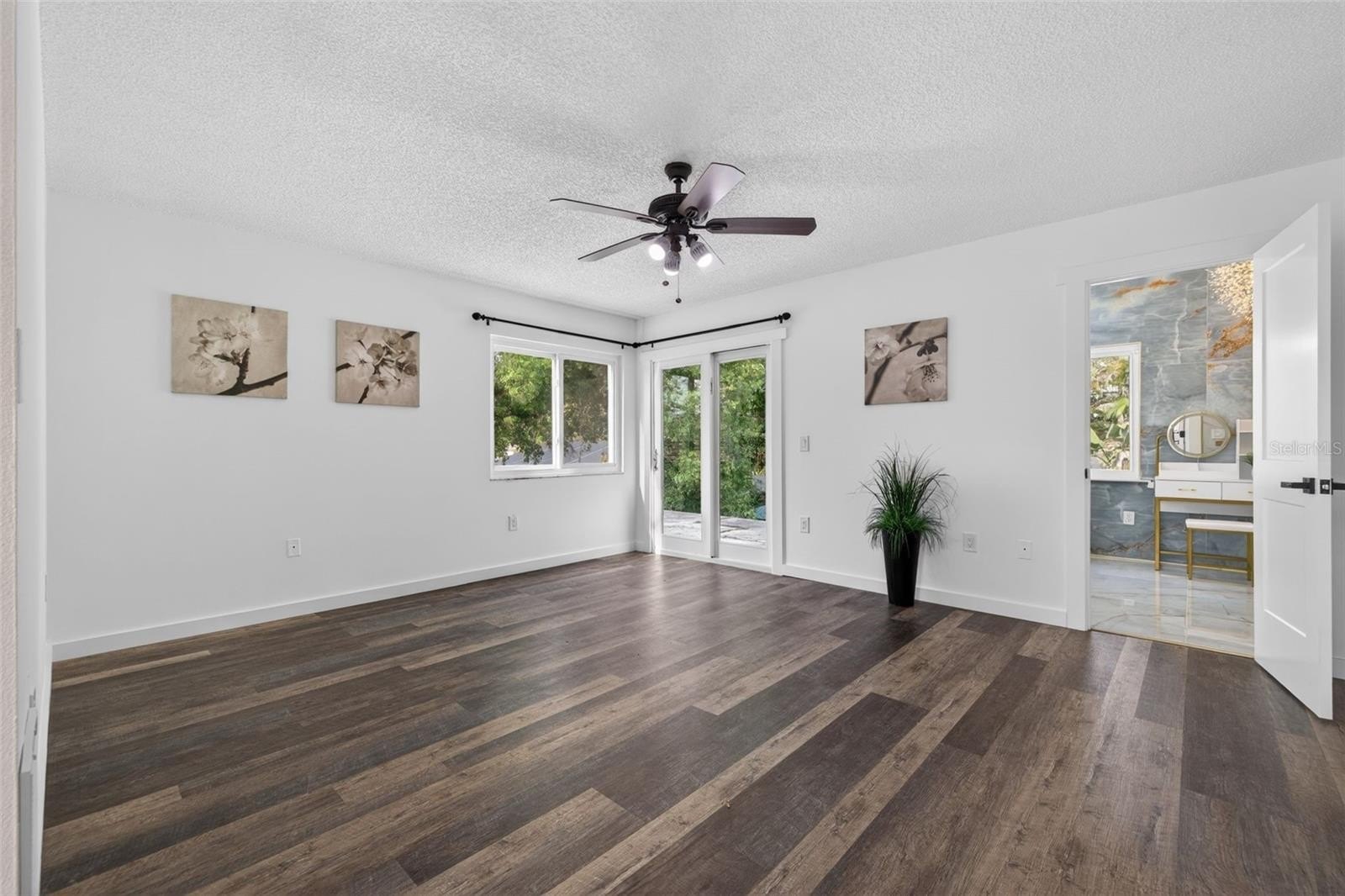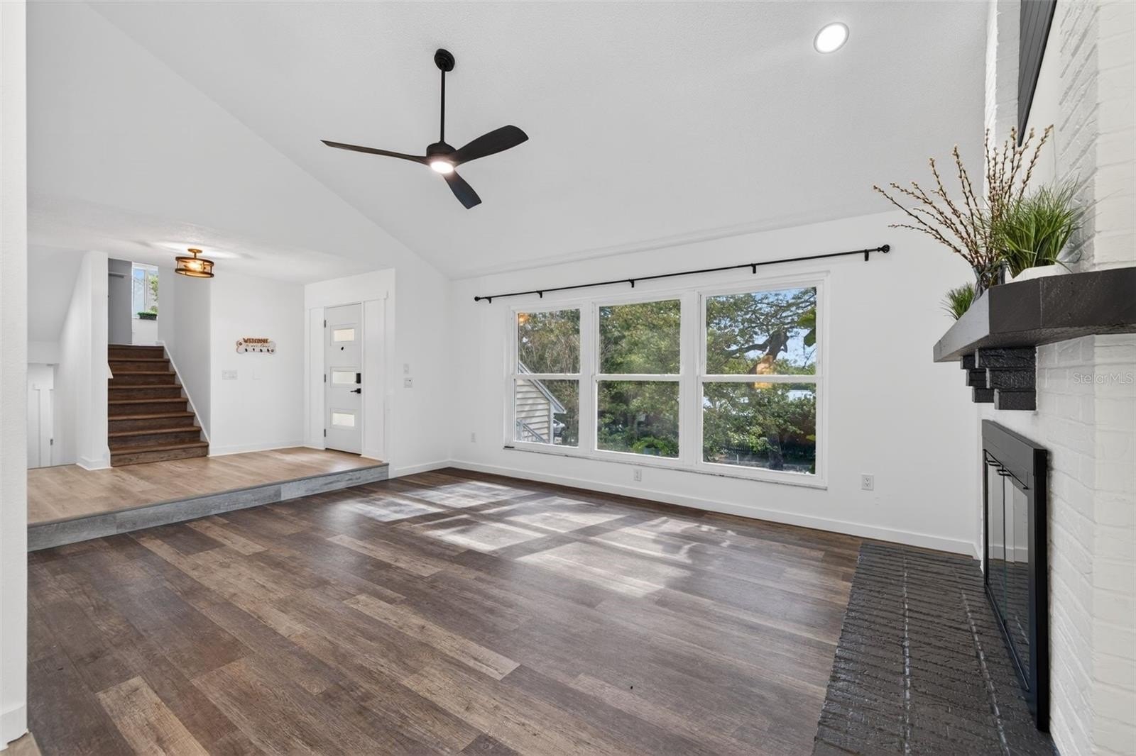 The main living area features vaulted ceilings with decorative beams, a wood-burning fireplace, and large hurricane-rated windows that fill the space with natural light. The kitchen flows into the dining area and offers soft-close cabinetry, granite countertops, a functional island, and ample prep and storage space. Upstairs, three bedrooms with luxury vinyl flooring share a remodeled bathroom with beautiful tile, built-in shelving, and a lighted mirror. A heated towel rack adds comfort and functionality. Great for drying clothes and keeping towels warm. The lower level includes an additional bedroom with its own wood burning fireplace and backyard views, plus a spacious laundry room with sink, cabinetry, and workspace. A laundry chute adds convenience, and direct garage access simplifies daily living. The 3-car garage features overhead storage, a workbench, mini-split system, and a pressure system for strong water flow throughout the home. There is also access to a crawl space for extra storage - perfect for all the holiday decorations. The top-level primary suite offers a private retreat with space for a sitting area or office, built-in shelving, and sliding doors overlooking the backyard with potential for a future balcony. It includes a large walk-in closet, additional closet, and a fully renovated bathroom with soaking tub, walk-in shower, dual vanity, chandelier, lighted mirror, bidet/toilet combo, and heated towel rack. Every detail has been custom designed - and it shows. The backyard sits on nearly 0.3 acres (almost 13,000 sq. ft), is fully fenced with vinyl fencing and offers plenty of room to expand - whether you envision a garden, play area, or a future ADU. The pool features a newer pump and solar heating. A covered porch with recessed lighting and two ceiling fans creates a great entertaining space, with an extended area ideal for grilling or a smoker. There is also an outdoor shower with motion lighting and modern finishes, plus a large storage shed. Additional features include a tankless water heater, attic fans, and cedar siding freshly painted in 2025. Location, location, location. Just minutes from Fred Howard Park and Sunset Beach, while still in Flood Zone X for added peace of mind. Close to downtown Tarpon Springs, the Sponge Docks, restaurants, shops, and schools. Listed below appraised value. There are simply too many details and upgrades to list—you truly need to see this home in person to appreciate it all. Schedule your showing today.