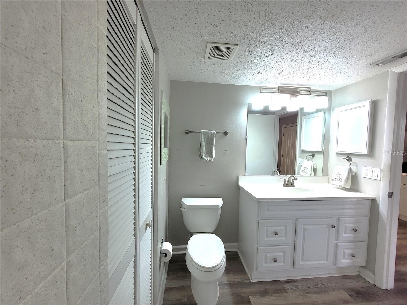 Welcome to Clearwater Cove, a hidden gem nestled within a peaceful residential enclave in Seminole, where coastal charm meets comfort and convenience. Tucked away from busy roads this community offers privacy, surrounded by mature landscaping, tree lined streets and tranquil green spaces. Enjoy this beautifully maintained 2 bedroom 2 corner unit, with private gated entryway, screened patio area great for entertaining, grilling or just enjoying the outdoor living space. Open floor plan, luxury coastal vinyl plank flooring and ceiling fans throughout. Spacious living area offers a cozy fireplace, sliding glass doors looking onto the patio area. Abundant natural light enhances this home's warm and welcoming feeling. Upgraded granite kitchen, shaker style wood cabinetry, plenty of counter space, large eat in island (70x70) that seats up to 8-10 persons is ideal for both everyday living and entertaining. Additional features include plenty of closet space, full size step in shower, large vanity area, linen closet and full size washer/dryer area located on the lower level for convenience. Upper level has large master and 2nd bedroom with wall to wall dual closets and ceiling fans. Sliding glass doors open to covered patio deck with ceiling fan. Enjoy your morning cup of coffee or afternoon breezes, sunshine and sunset colors. The deck is great spot for a coffee bar and mini fridge.
