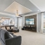 The chef’s kitchen offers 42” upper cabinets, stainless steel appliances, a natural gas cooktop, double ovens, a large island with seating, pendant lighting, and a stylish stone backsplash—delivering both function and style. A sunlit bonus room surrounded by windows provides flexible space for a playroom, gym, or media room.