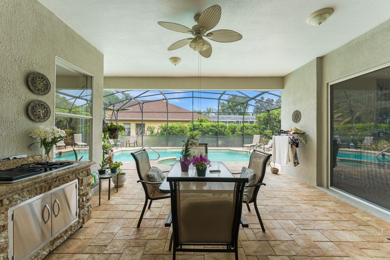 This exceptional 5 bedroom, 3.5 bath residence is located in the guard gated community of Heathrow, where refined elegance meets resort style living. Perfectly positioned on a beautifully treed and landscaped corner homesite, this impressive residence offers a harmonious blend of sophistication, comfort and outdoor luxury. From the moment you arrived, the home's setting and curb appeal cr3eate a lasting impression. Inside, thoughtfully designed living spaces are enhanced by abundant natural light and a seamless flow ideal for both everyday living and upscale entertaining. The updated kitchen is a true centerpiece, showcasing stunning granite countertops, 42 inch custom cabinetry and an open design that flows effortlessly into the dinette area which overlooks the expansive lanai and pool. Step outside to a breathtaking resort-style outdoor retreat, featuring a sparkling swimming pool and spa accented by elegant pavers, a custom summer kitchen for effortless entertaining and a private outdoor shower - creating the ultimate Florida lifestyle experience. The spacious owner's suite provides a relaxing sanctuary, while 4 bedrooms offers flexibility for family, guests or home office needs. Resident enjoy a 24 hour gated security, championship golf, racquet club amenities, fitness center, scenic walking trails and convenient access to I-4, SR 417, top rated Seminole County schools, fine dining and premier shopping. A rare opportunity, don't miss this one!