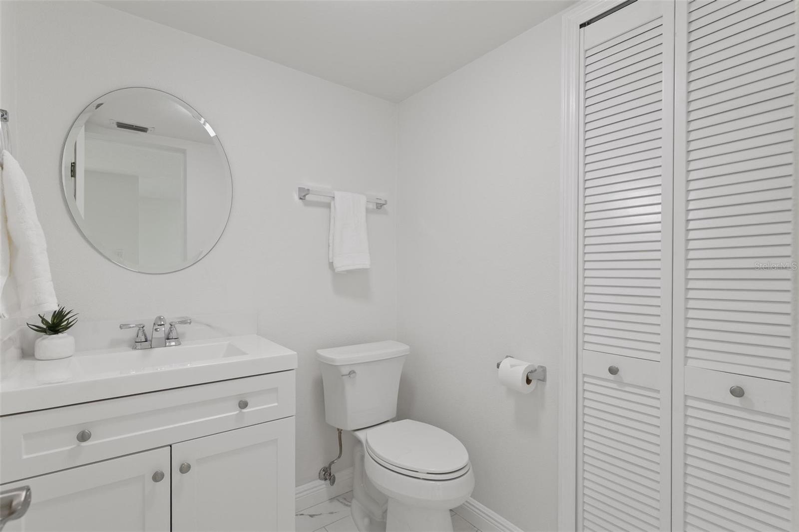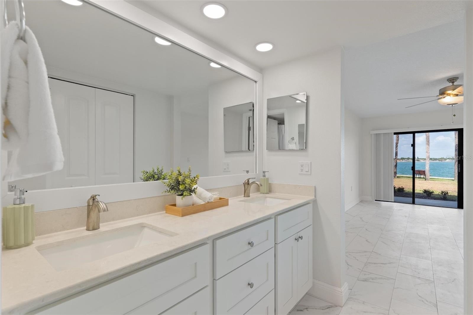 One or more photo(s) has been virtually staged. If you’ve been searching for your own slice of waterfront paradise, this MOVE-IN ready condo is a must-see! Ideally situated on the first floor, it offers convenient walk-up access for effortless everyday living. Located in SeaPointe Terrace—a boutique, three-story waterfront community at the southern tip of St. Petersburg—this home welcomes you with breathtaking panoramic views of Tampa Bay the moment you step inside. Designed for both comfort and entertaining, the spacious 1,405-square-foot open layout lives large and features beautiful, consistent tile flooring throughout. Expansive sliding glass doors from both the main living area and the primary suite lead to an impressive 44-foot private waterfront patio, perfect for enjoying morning coffee and evening sunsets, while an additional front patio provides a charming space for gardening or relaxing outdoors. The brand-new chef’s kitchen showcases white shaker cabinetry, stainless steel appliances, granite countertops, and a warm stone backsplash. The primary suite is a true retreat with million dollar morning water views, walk-in closet, and an en-suite bathroom with a custom double vanity and a beautifully designed shower. The guest bedroom features a built-in white shaker Murphy bed that will convey to the new owners for added versatility when you don’t have guests in town! The ideal split floor plan makes it perfect for having friends over, while still maintaining privacy. The right side of the SPACIOUS living room could easily be walled off to create a THIRD BEDROOM with its own en-suite bathroom if desired! It currently serves as a dream home waterfront office and workout area. If converted you still have an additional half bathroom right next to the kitchen too! Extensive upgrades include new luxury tile flooring throughout, fully renovated bathrooms, updated lighting fixtures, a new AC system, and a new water heater, while the HOA completed a new roof and seawall in 2023, enhancing the property’s low-maintenance appeal. Living in SeaPointe Terrace, you will enjoy resort-style amenities including a heated waterfront pool, kayak storage and launch, soon to be completed fishing pier, and tennis/pickleball courts, with HOA fees covering insurance, exterior maintenance, water, sewer, trash, cable, and Wi-Fi! Tucked away in a quiet enclave yet just minutes from vibrant downtown St. Petersburg and some of the nation’s top-rated beaches, this home offers the perfect balance of tranquility and accessibility. Don’t miss out on boutique waterfront living at its finest for an unbeatable price, schedule your private showing today!