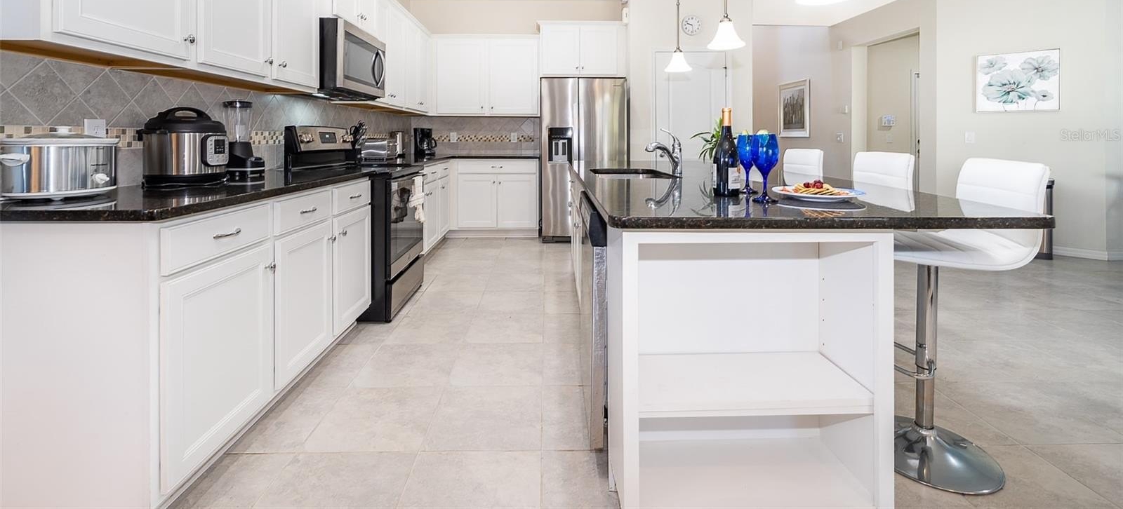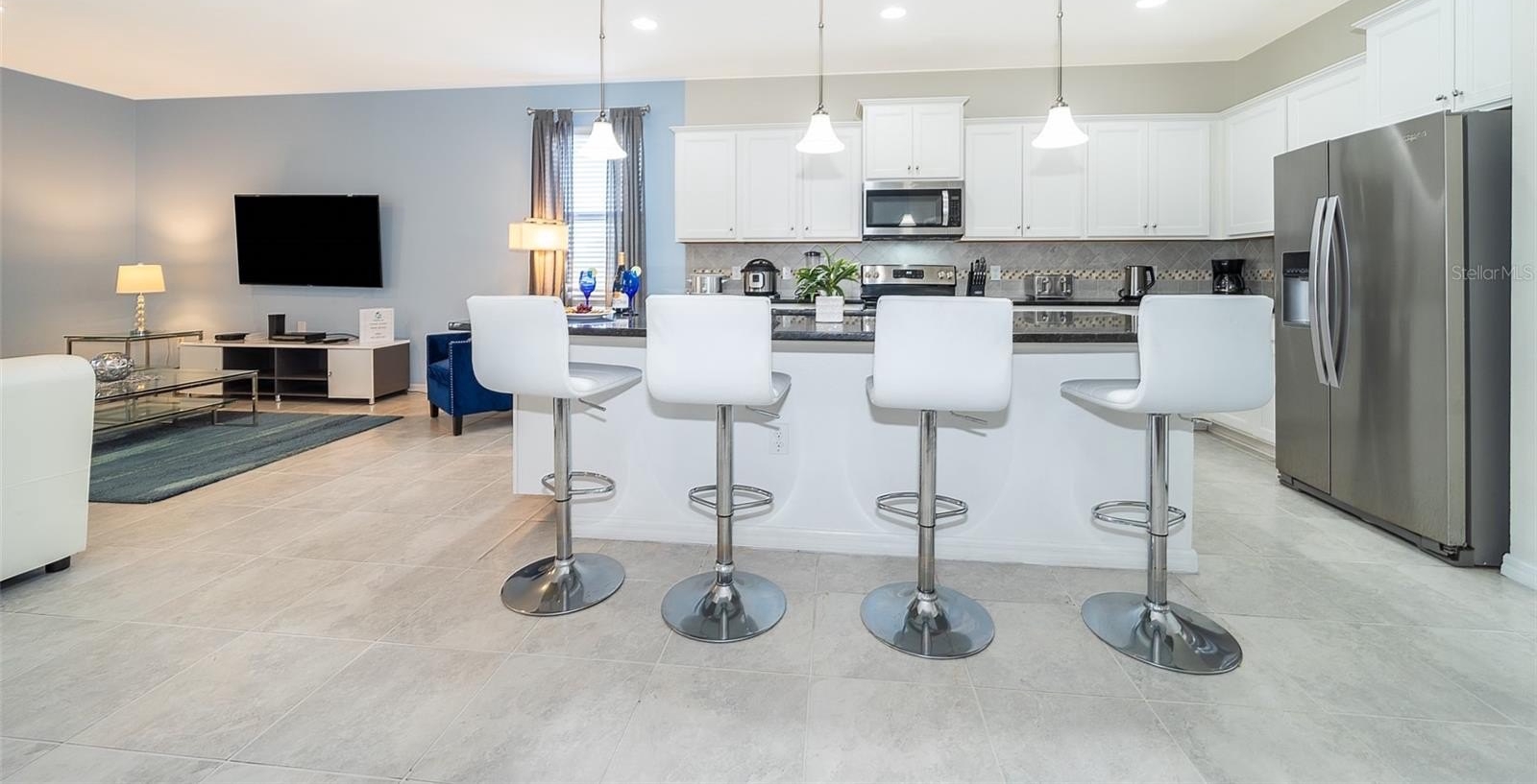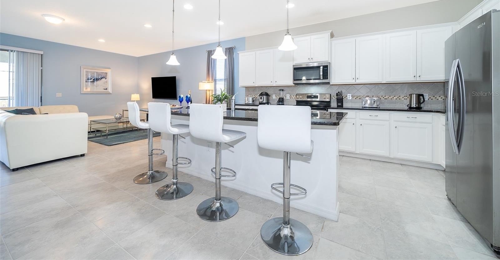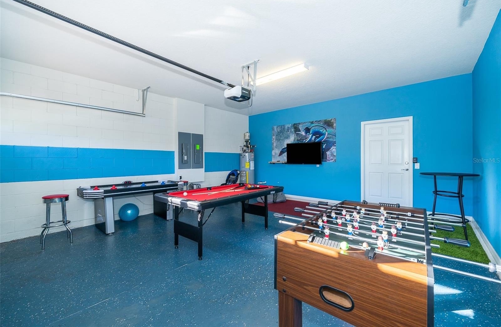 Turnkey 8-bedroom, 6-bath fully furnished pool home located in the highly desirable Windsor at Westside Resort. This well-maintained property offers over 4,000 sq ft of living space with a functional and spacious layout ideal for short-term rental use. The home features an open-concept main floor with a large kitchen, breakfast bar, formal dining area, and expansive living room. A first-floor bedroom and full bath provide convenience, along with a rear primary suite offering direct pool access and functioning as a pool bath. The covered lanai overlooks a private setting with no rear neighbors and a pond to the side. Upstairs includes a large loft/game area with projector and gaming stations. The second floor consists of 6 bedrooms and 4 bathrooms, including multiple themed rooms, a Jack-and-Jill bathroom with dual vanities, and additional ensuite configurations. In total, the property offers 3 ensuite bedrooms. The garage has been converted into a game room, enhancing rental appeal. Located just minutes from major theme parks, shopping, and dining. Windsor at Westside offers resort-style amenities including a 10,000 sq ft clubhouse, pool, lazy river, restaurant/bar, fitness center, sports courts, and more. HOA includes gated access, lawn care, daily valet trash service, cable, internet, and full access to amenities. Property has strong rental potential and is being sold fully furnished and ready for immediate use or income production.