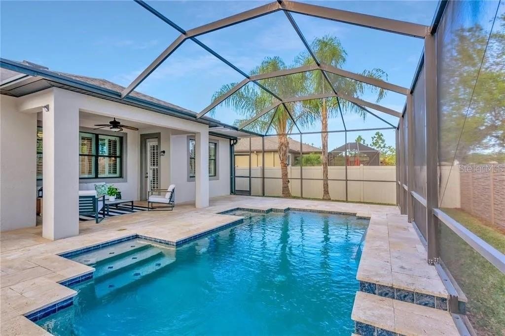 Step outside to your own backyard retreat—a screened-in resort-style pool, covered lanai, and fully fenced yard with no rear neighbors, creating the perfect setting for relaxation or entertaining.