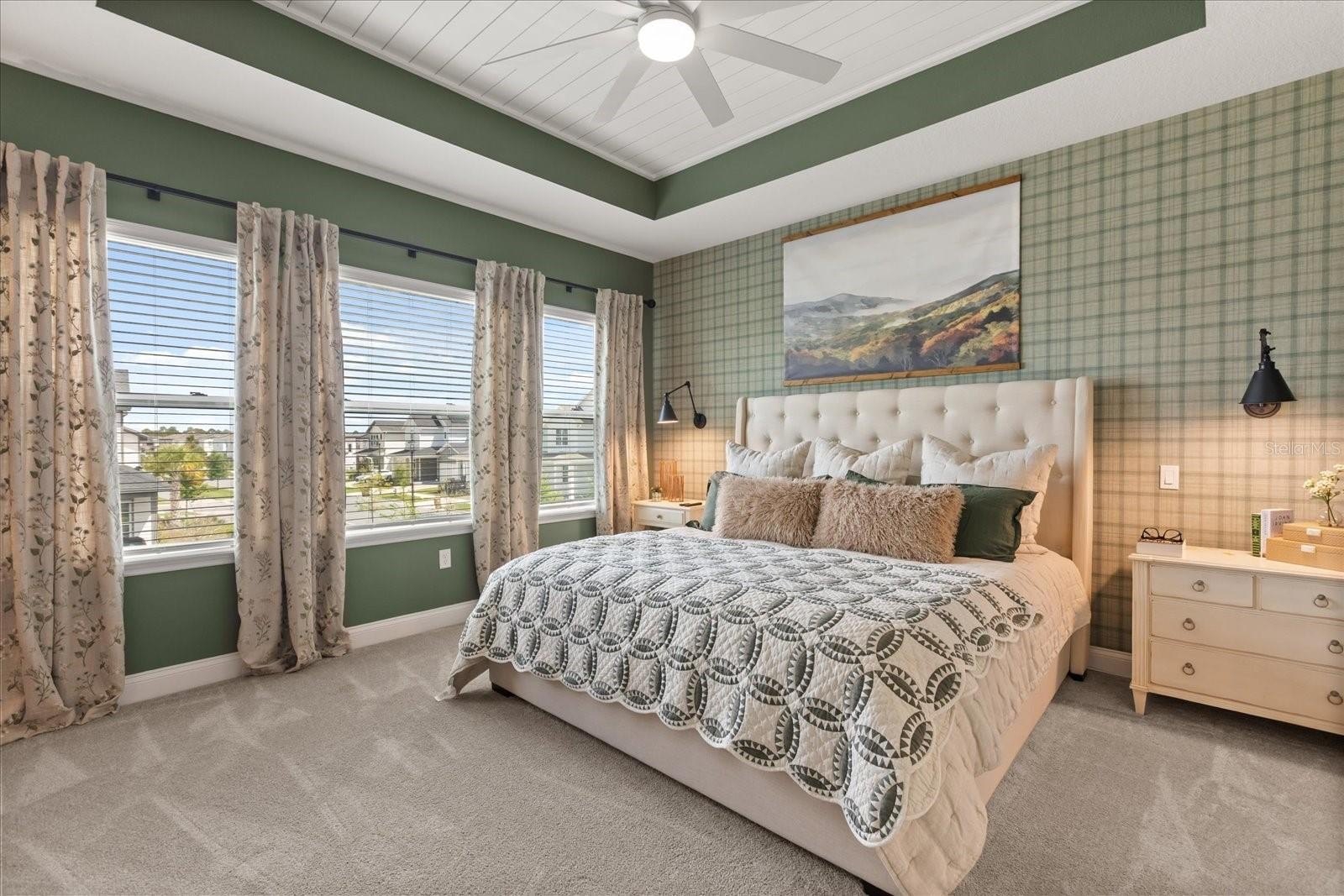 The kitchen is thoughtfully designed with a large quartz island, farmhouse sink, abundant cabinetry, and a walk in pantry. The primary suite provides a private retreat with a sitting area, fireplace, spa style bathroom, soaking tub, dual vanities, and generous walk in closets.