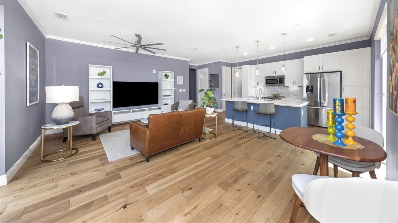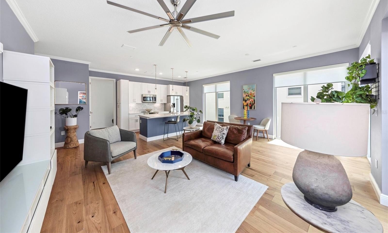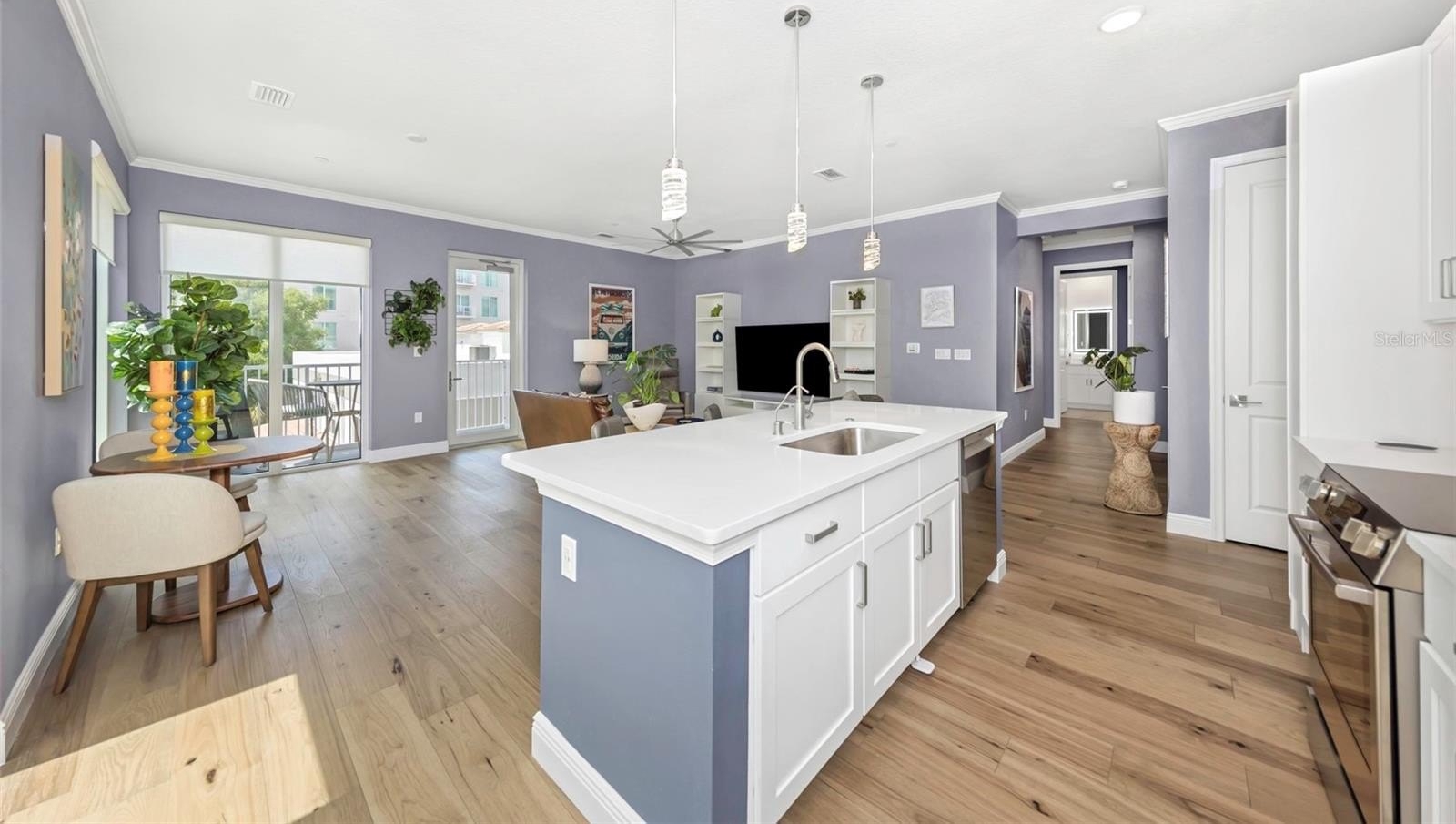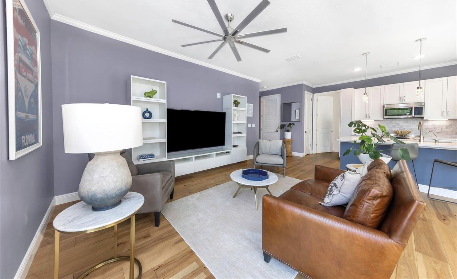 This upgraded CORNER unit goes beyond builder-grade finishes with over $20K in custom electric blinds/shades, a custom built-in entertainment center with 75” TV, plus engineered hardwood flooring, custom lighting and ceiling fans, Electrolux washer/dryer and even a reverse osmosis system.